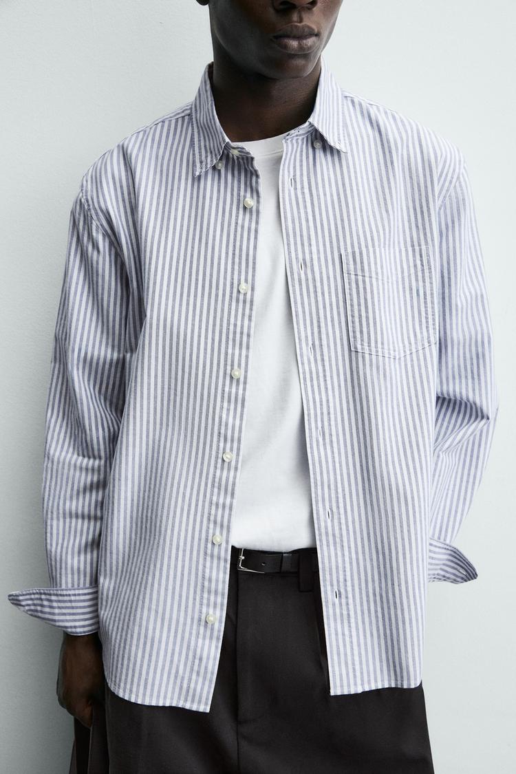 ZARA РУБАШКА С ФАКТУРНОЙ ОТДЕЛКОЙ, СИНИЙ/БЕЛЫЙ