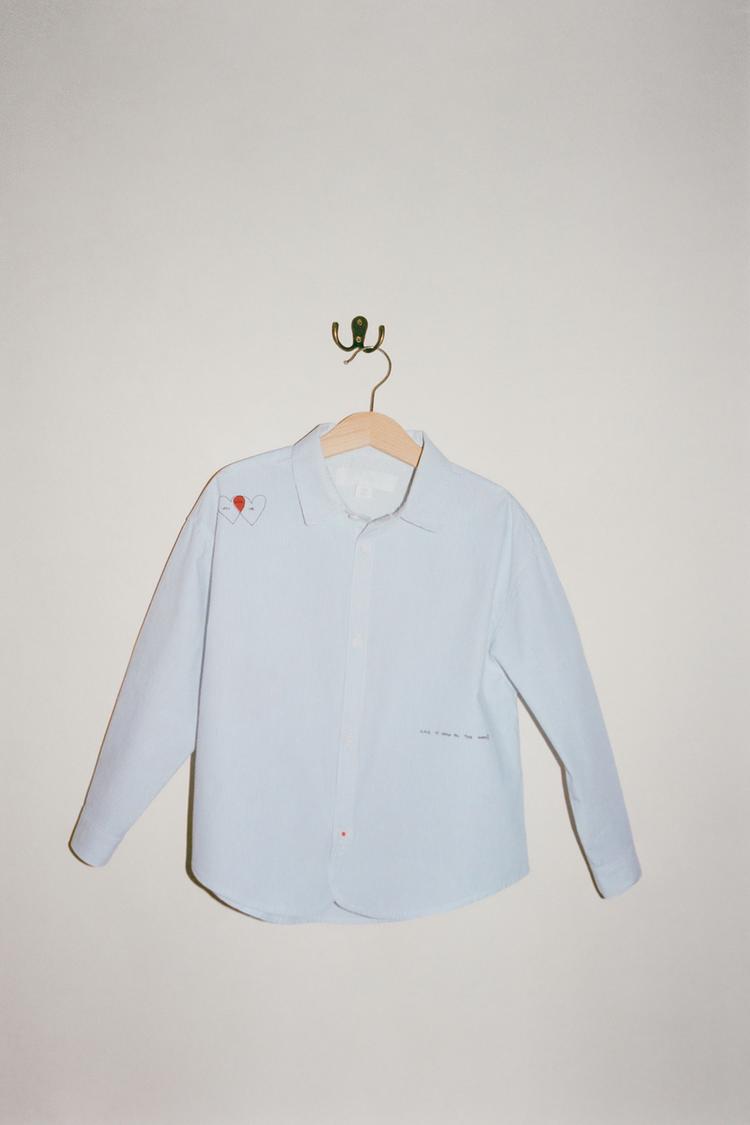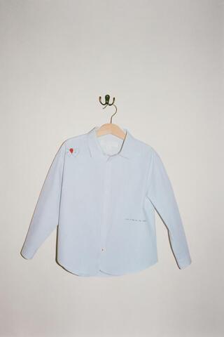 Рубашка с отложным воротником и длинными рукавами. Застежка на пуговицы спереди. Полосатый принт и рисунки ORFAYO ©.