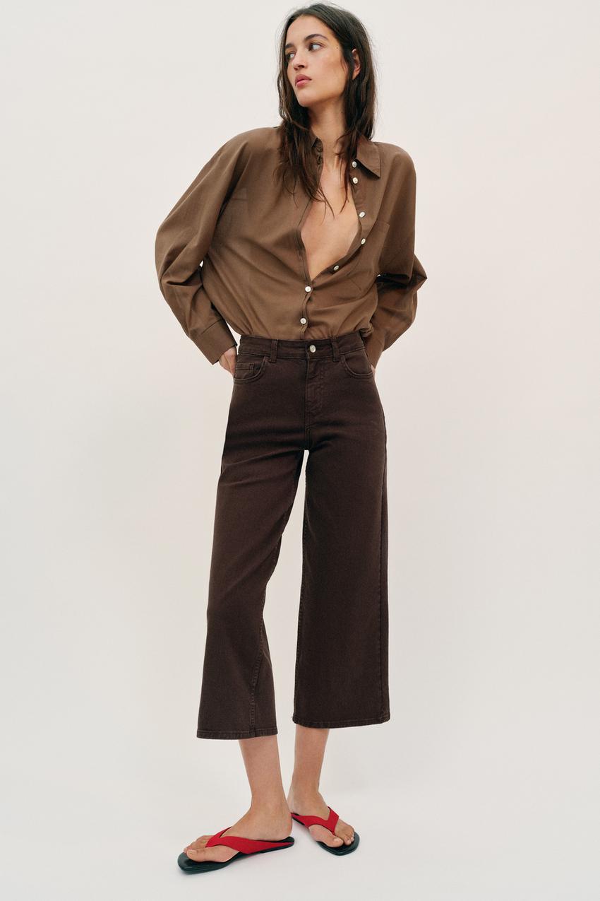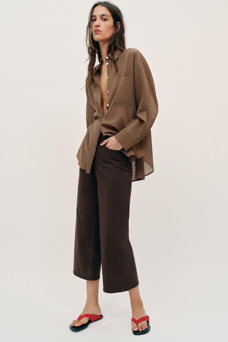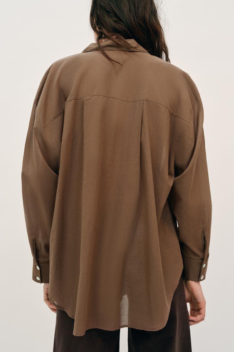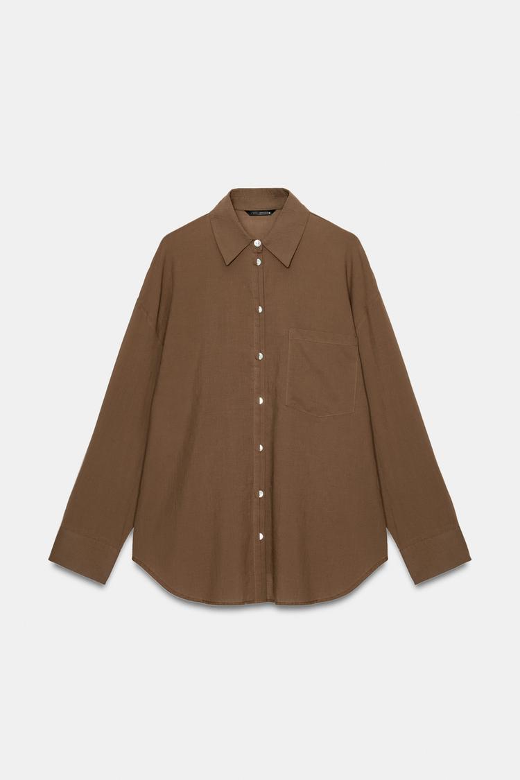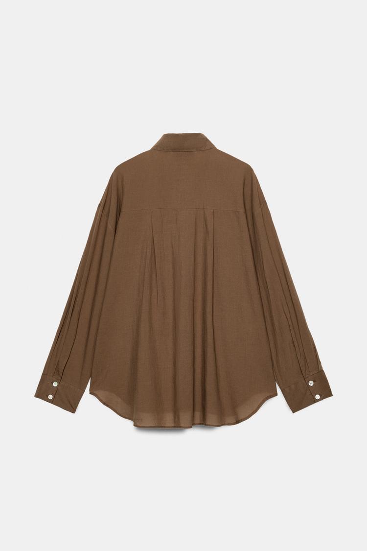 ZARA РУБАШКА ОВЕРСАЙЗ ИЗ ХЛОПКА, КОРИЧНЕВЫЙ