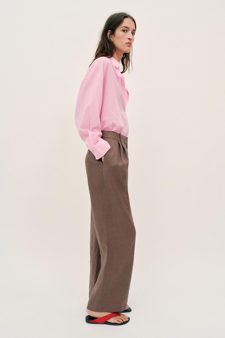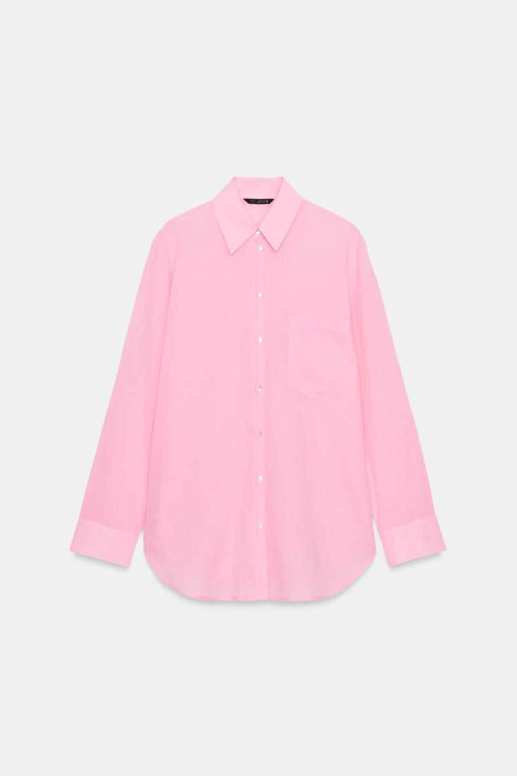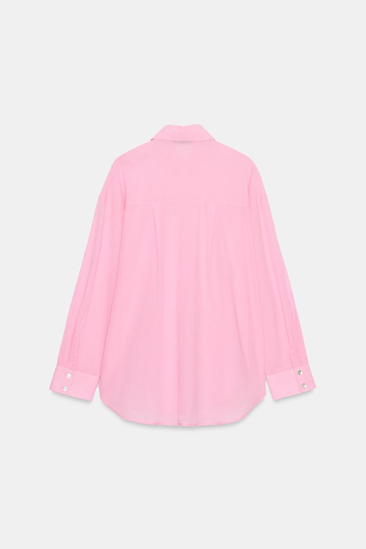 ZARA РУБАШКА ОВЕРСАЙЗ ИЗ ХЛОПКА, ЦВЕТ РОЗОВОГО ДЕРЕВА