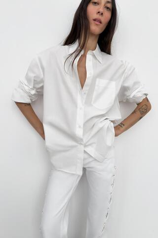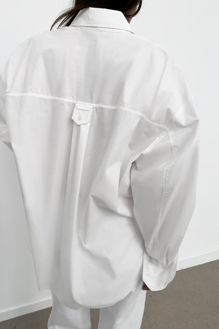 ZARA РУБАШКА ОВЕРСАЙЗ ИЗ ПОПЛИНА, БЕЛЫЙ
