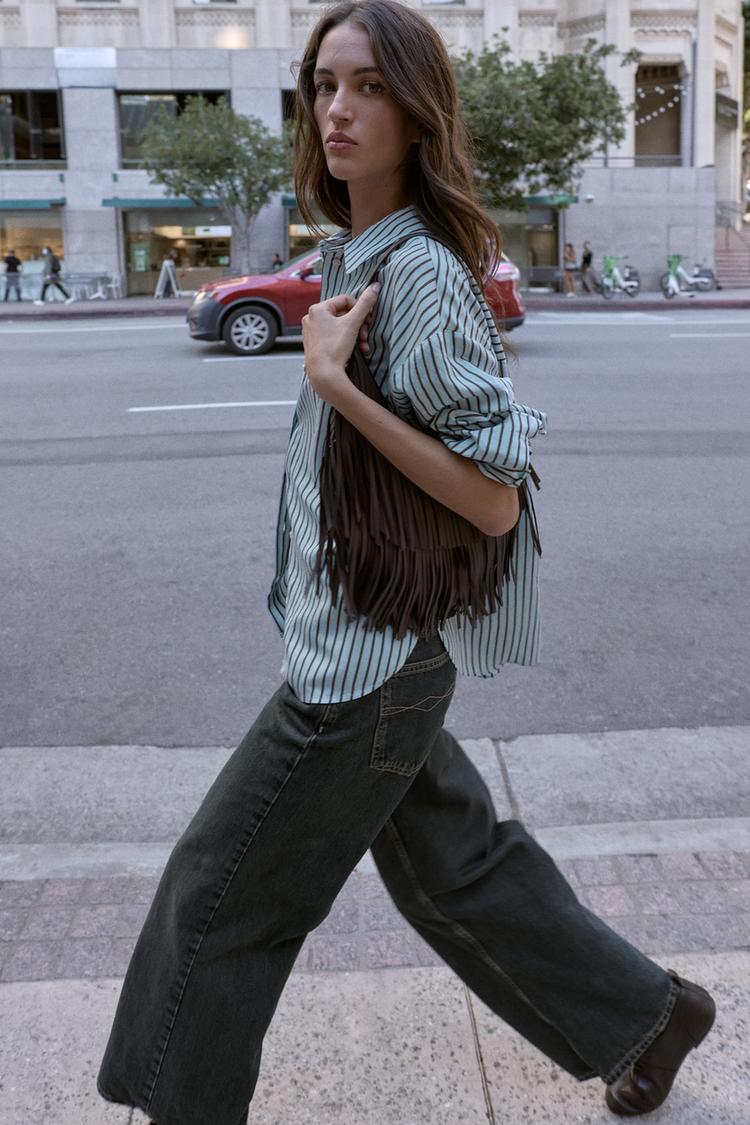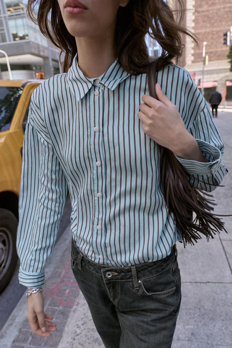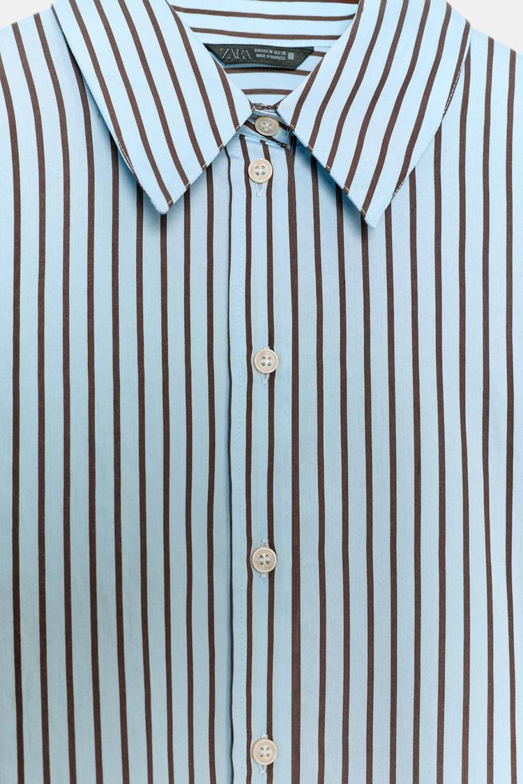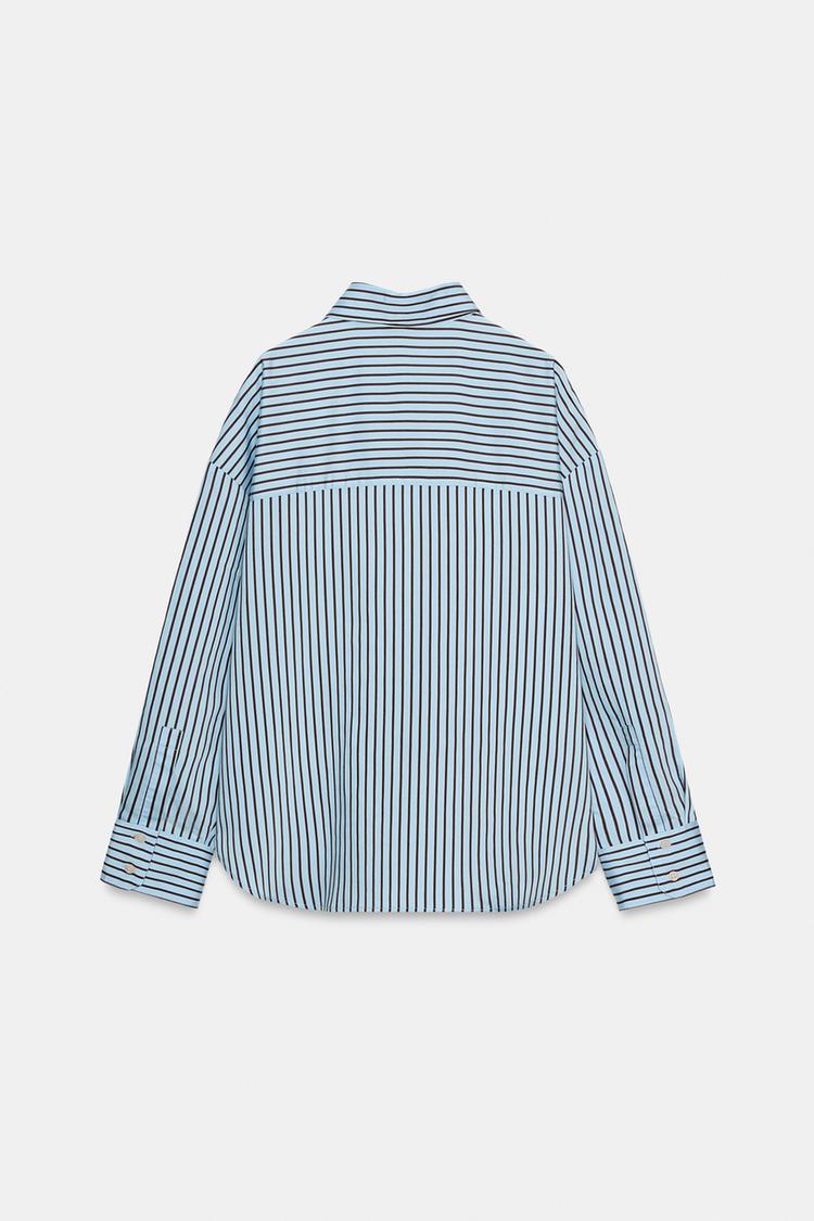 ZARA РУБАШКА ОВЕРСАЙЗ ИЗ ПОПЛИНА В ПОЛОСКУ, СИНИЙ/БЕЛЫЙ