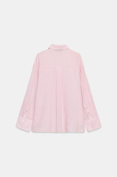 ZARA РУБАШКА ОВЕРСАЙЗ С КАРМАНОМ, РОЗОВЫЙ