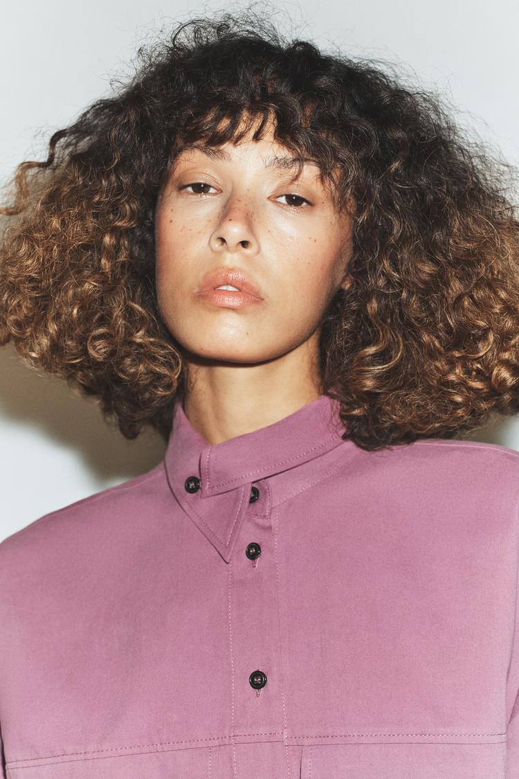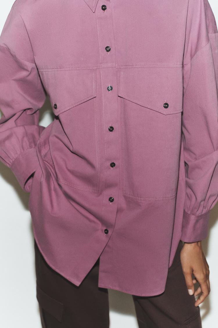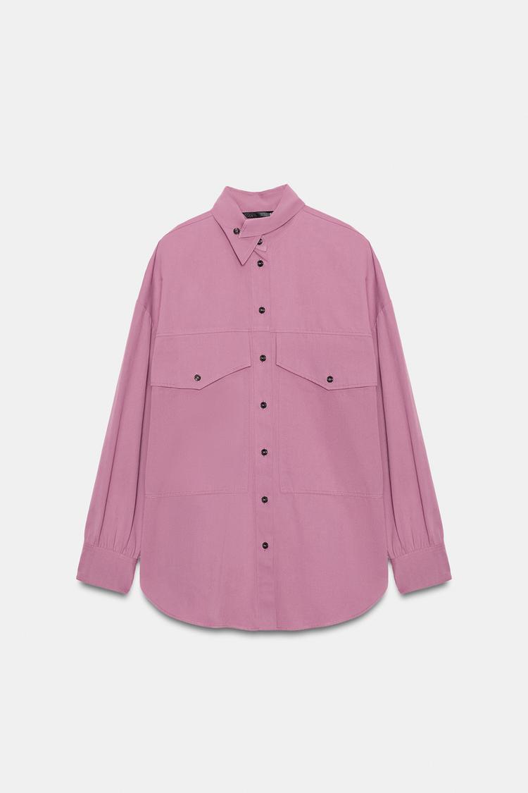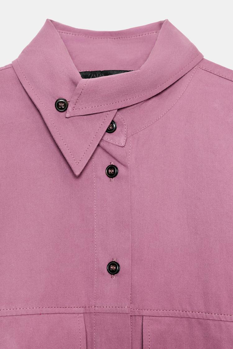 ZARA РУБАШКА ОВЕРСАЙЗ С ВОРОТНИКОМ-СТОЙКОЙ, ЦВЕТ МАЛЬВЫ