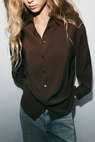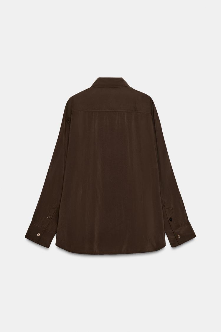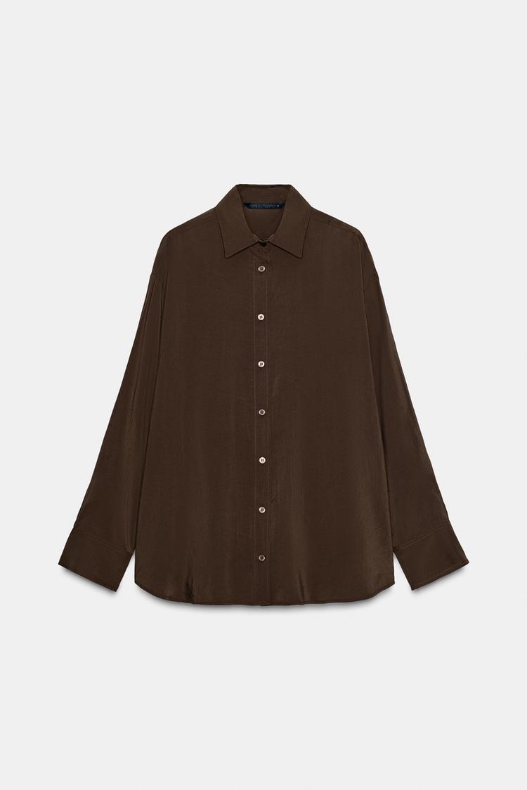 ZARA РУБАШКА OVERSIZE СТРУЯЩЕГОСЯ ПОКРОЯ, ШОКОЛАДНО-КОРИЧНЕВЫЙ