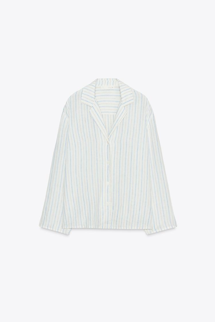ZARA РУБАШКА-ПИЖАМА В ПОЛОСКУ ИЗ ЛЬНА — ZW COLLECTION, ПОЛОСКИ