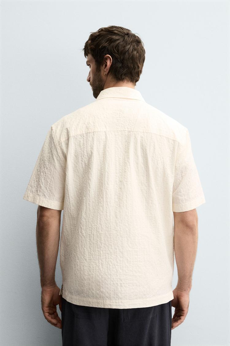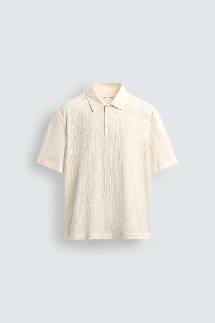 ZARA РУБАШКА-ПОЛО ИЗ ЖАТОЙ ТКАНИ, БЕЛЫЙ