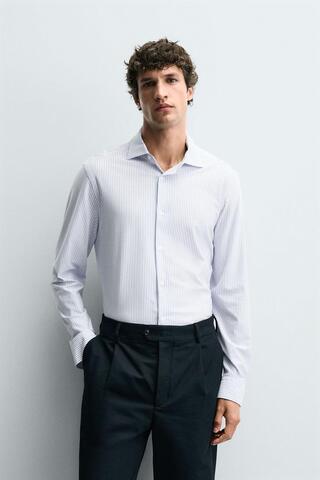 ZARA РУБАШКА REGULAR-FIT, БЕЛЫЙ/МОРСКОЙ СИНИЙ