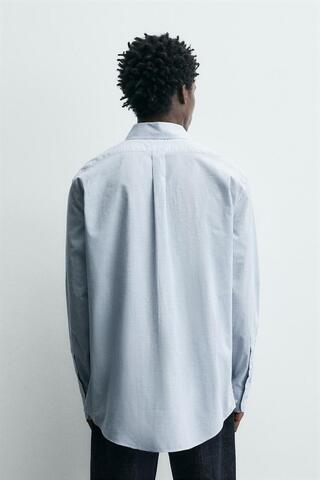 ZARA РУБАШКА REGULAR FIT В КЛЕТКУ, БЕЛЫЙ/НЕБЕСНО-ГОЛУБОЙ