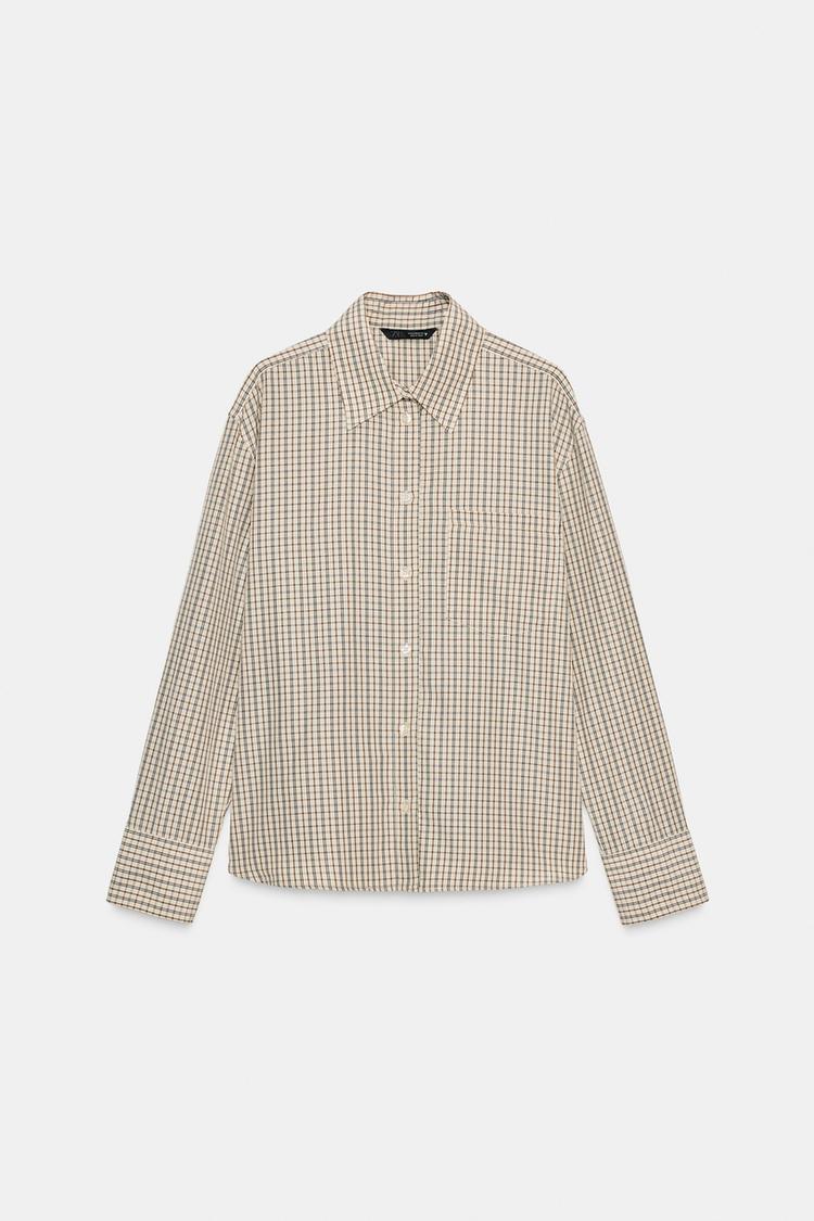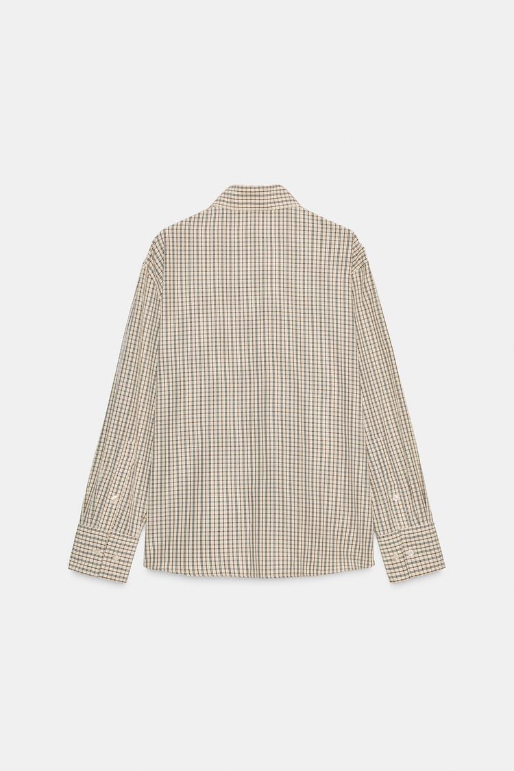 ZARA РУБАШКА REGULAR FIT В КЛЕТКУ, ЭКРЮ/КОРИЧНЕВЫЙ