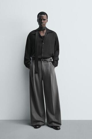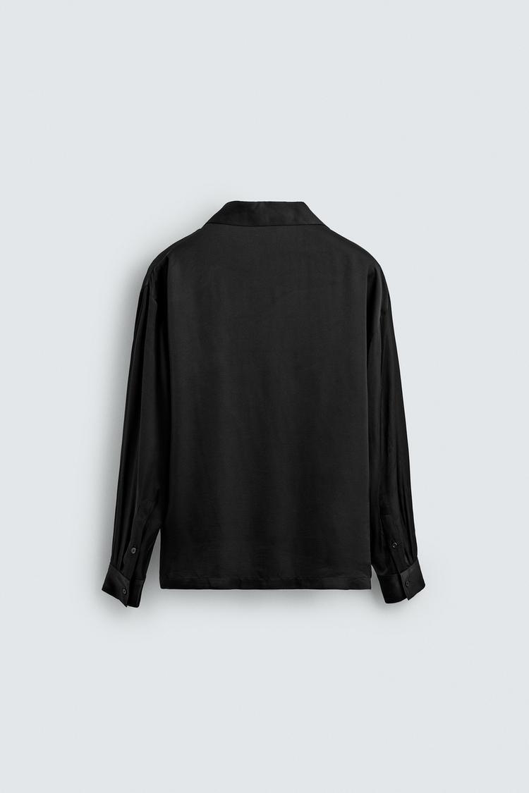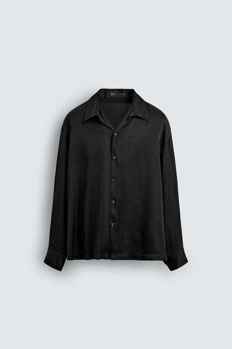 ZARА РУБАШКА RELAXED FIT ИЗ СТРУЯЩЕЙСЯ ТКАНИ, ЧЕРНЫЙ