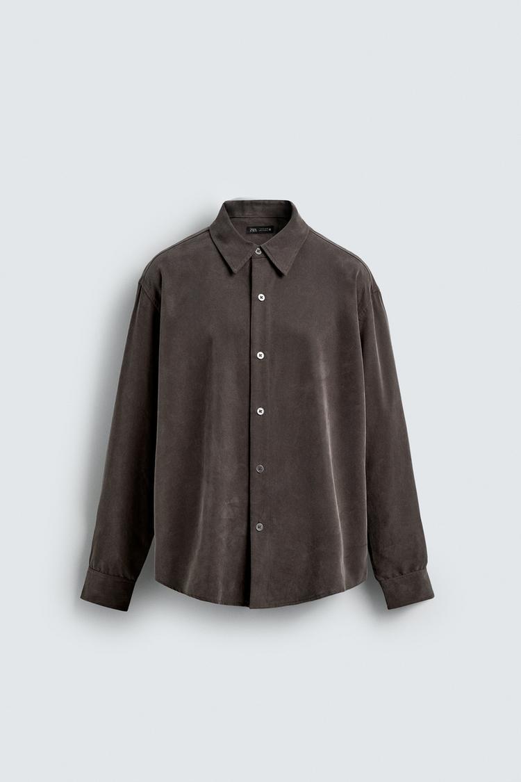 ZARА РУБАШКА RELAXED FIT ИЗ СТРУЯЩЕЙСЯ ТКАНИ, РОЗОВАТО-КОРИЧНЕВЫЙ