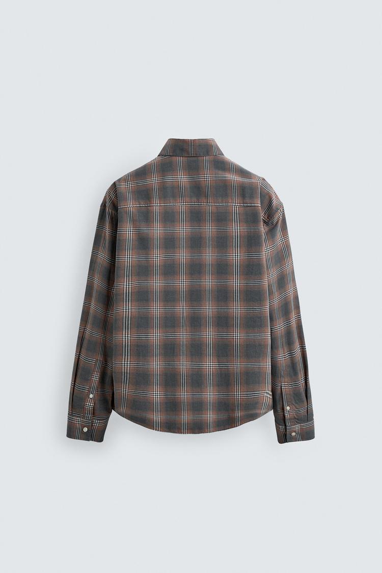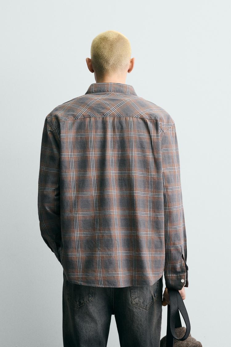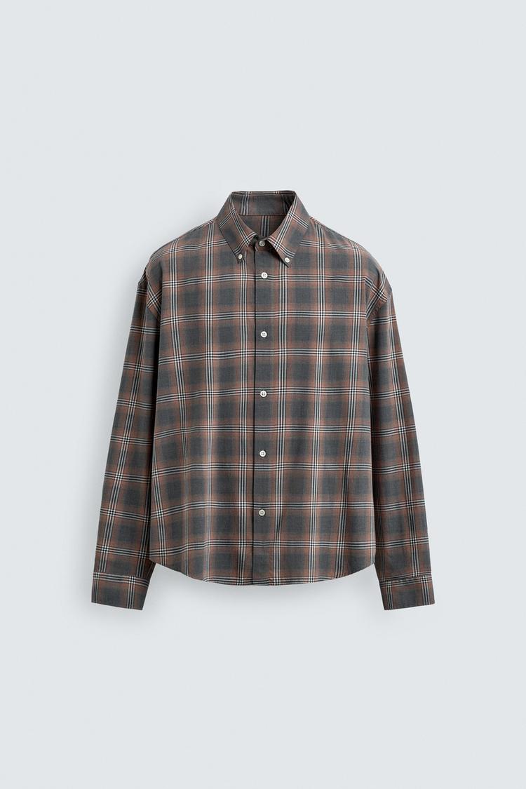 ZARA РУБАШКА RELAXED FIT В КЛЕТКУ, СЕРЫЙ МЕЛАНЖ