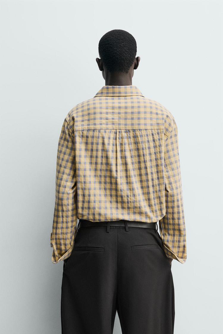 ZARA РУБАШКА RELAXED FIT В КЛЕТКУ, ЦВЕТ СЛИВОЧНОГО МАСЛА