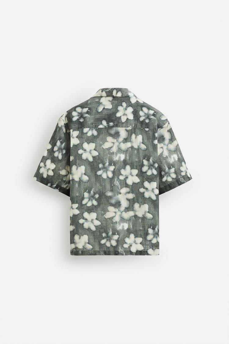 ZARA РУБАШКА С АБСТРАКТНЫМ ЦВЕТОЧНЫМ ПРИНТОМ, ОТТЕНКИ СЕРОГО