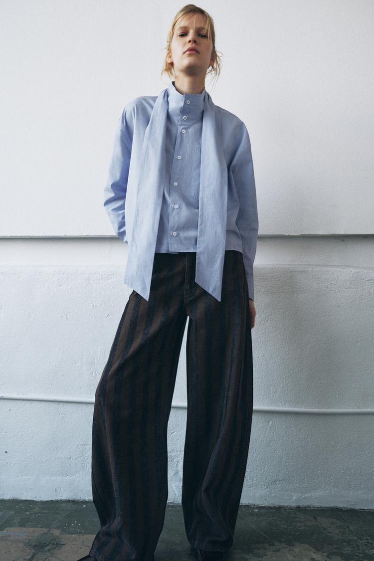 ZARA РУБАШКА С БАНТОМ ZW COLLECTION, СИНИЙ