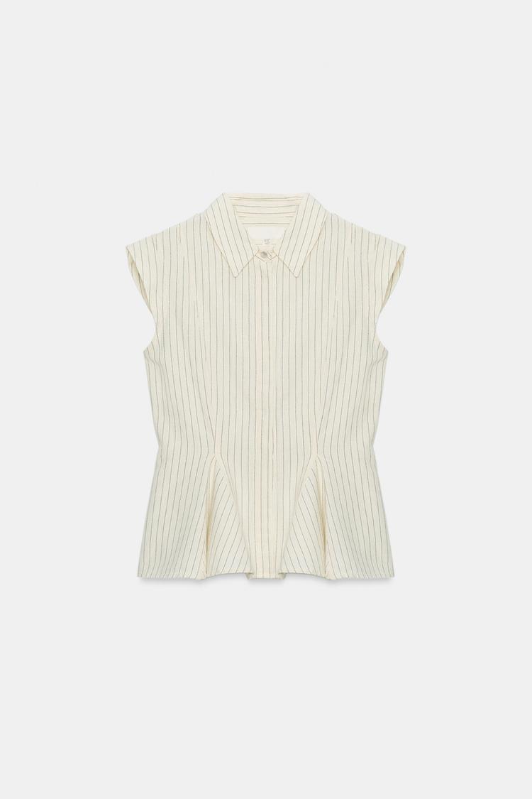 ZARA РУБАШКА С БАСКОЙ В ПОЛОСКУ — ZW COLLECTION, ЭКРЮ