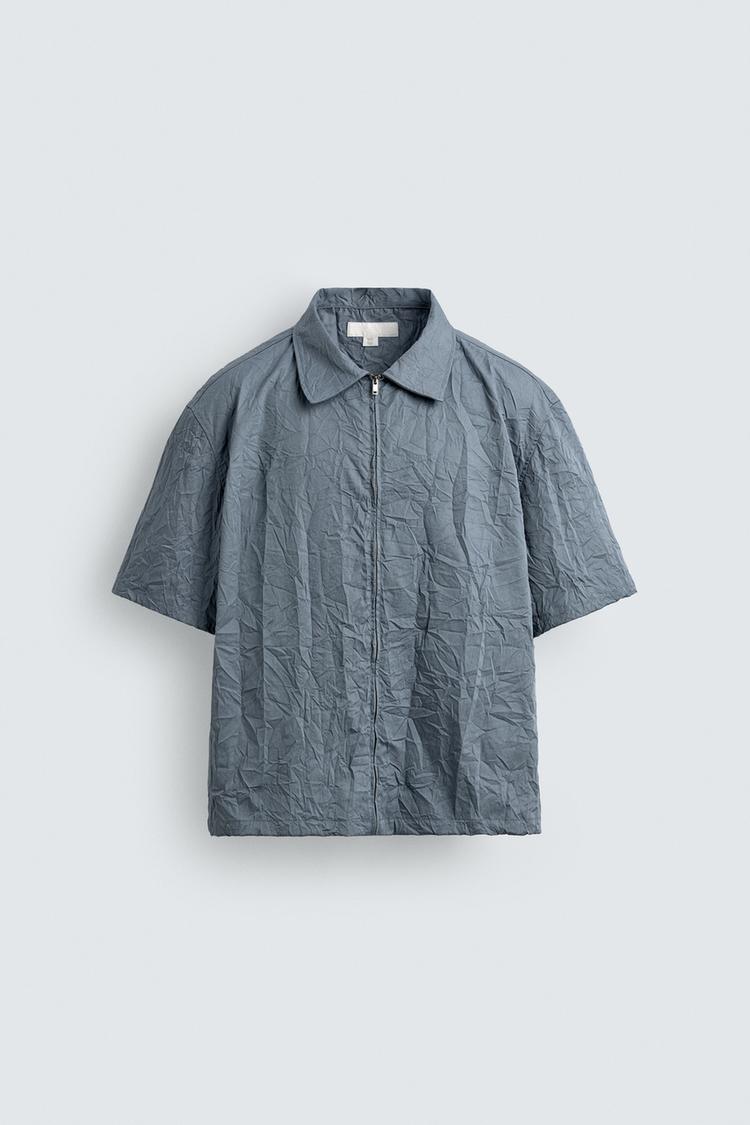 ZARА РУБАШКА С ЭФФЕКТОМ ПОМЯТОСТИ НА МОЛНИИ, НЕБЕСНО-ГОЛУБОЙ