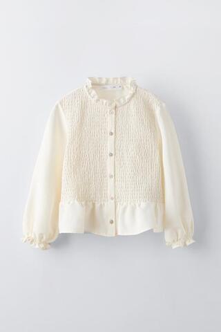 ZARA РУБАШКА С ЭЛАСТИЧНЫМИ ДЕТАЛЯМИ, ЭКРЮ