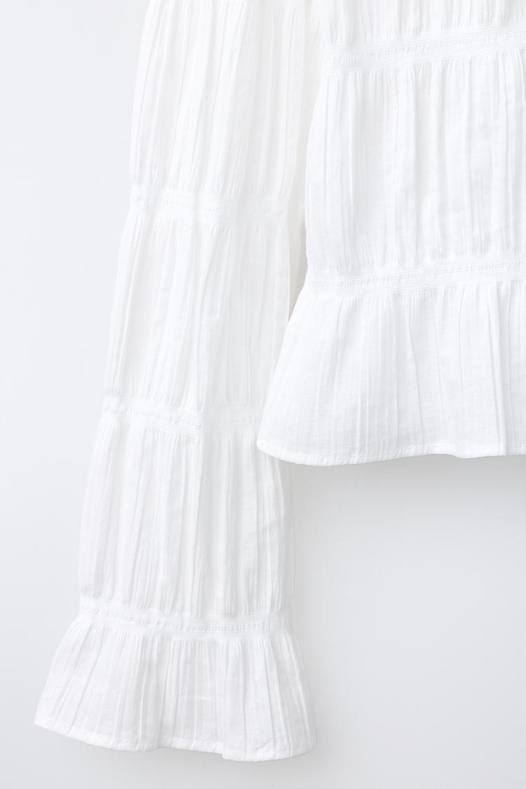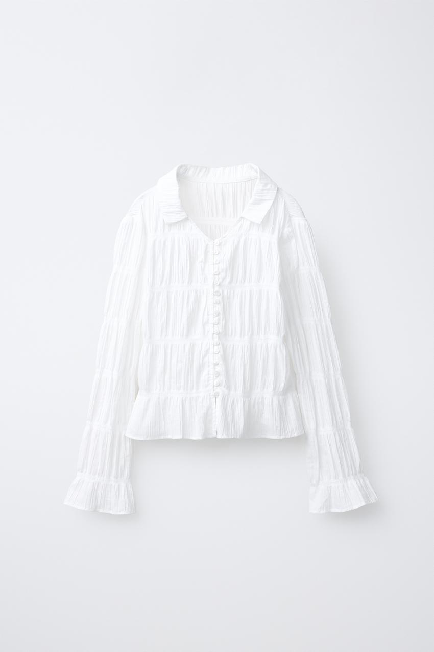 ZARA РУБАШКА С ЭЛАСТИЧНЫМИ КРОМКАМИ, БЕЛЫЙ