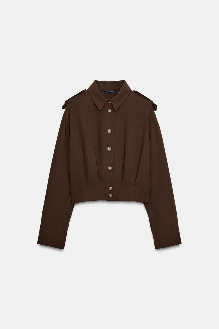 ZARA РУБАШКА С ХЛЯСТИКАМИ НА ПЛЕЧАХ, КОРИЧНЕВЫЙ