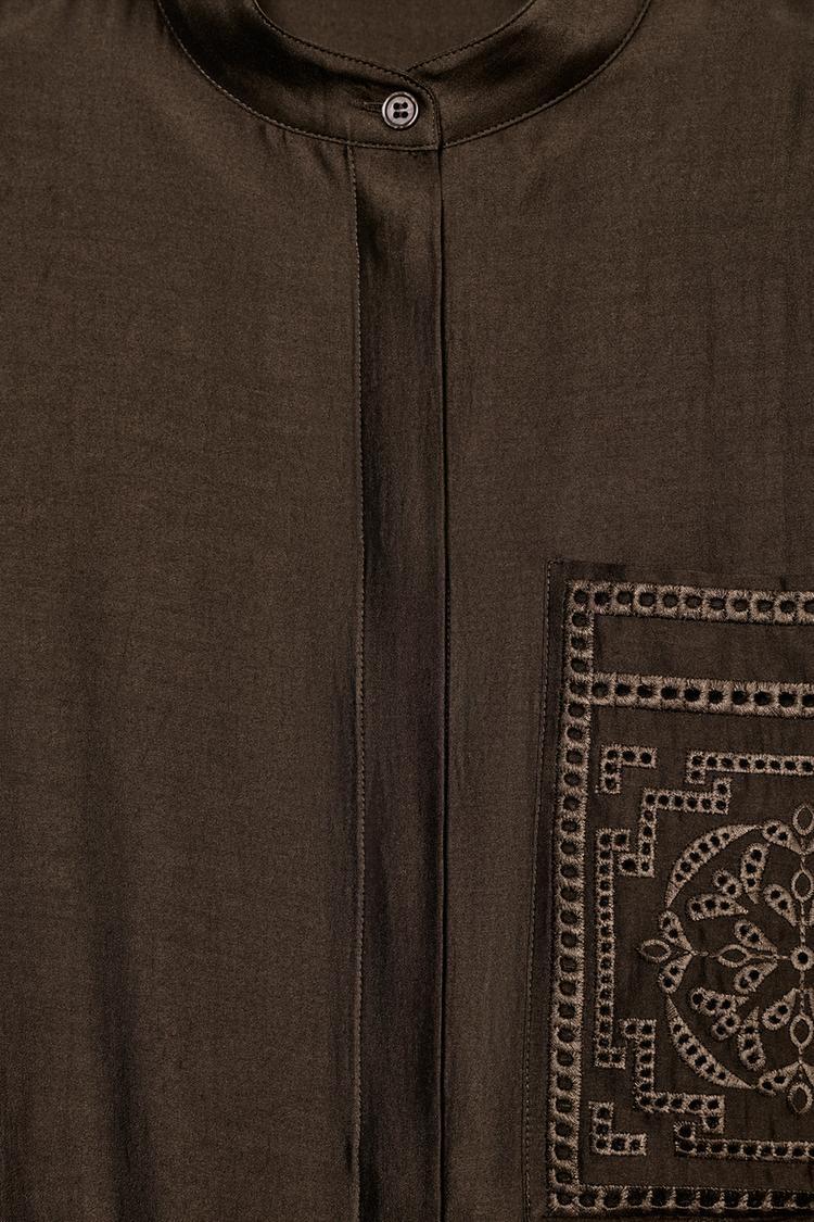 ZARA РУБАШКА С КАРМАНОМ И ВЫШИВКОЙ — ZW COLLECTION, КОРИЧНЕВЫЙ