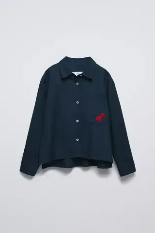 ZARA РУБАШКА С КАРМАНОМ С ВЫШИВКОЙ, МОРСКОЙ СИНИЙ