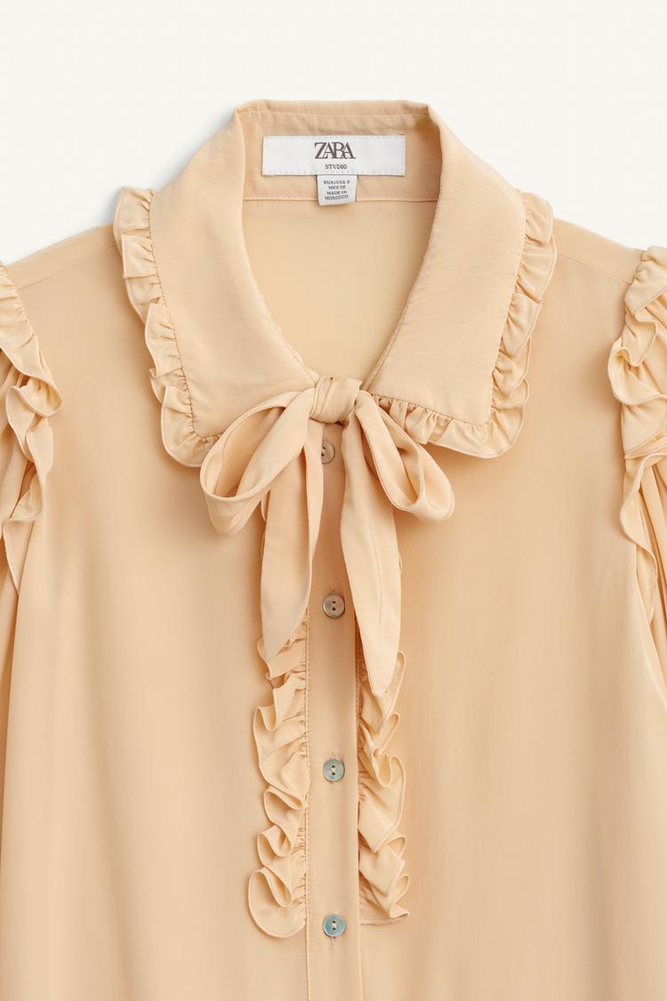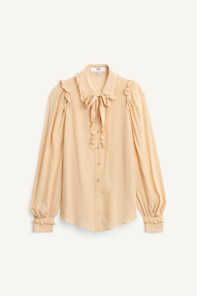ZARA РУБАШКА С КОНТРАСТНЫМ БАНТОМ, ПЕРСИКОВЫЙ