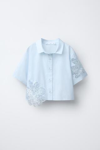 ZARA РУБАШКА С КОНТРАСТНЫМ БЛЕСТЯЩИМ ЦВЕТОМ, СВЕТЛО-ГОЛУБОЙ