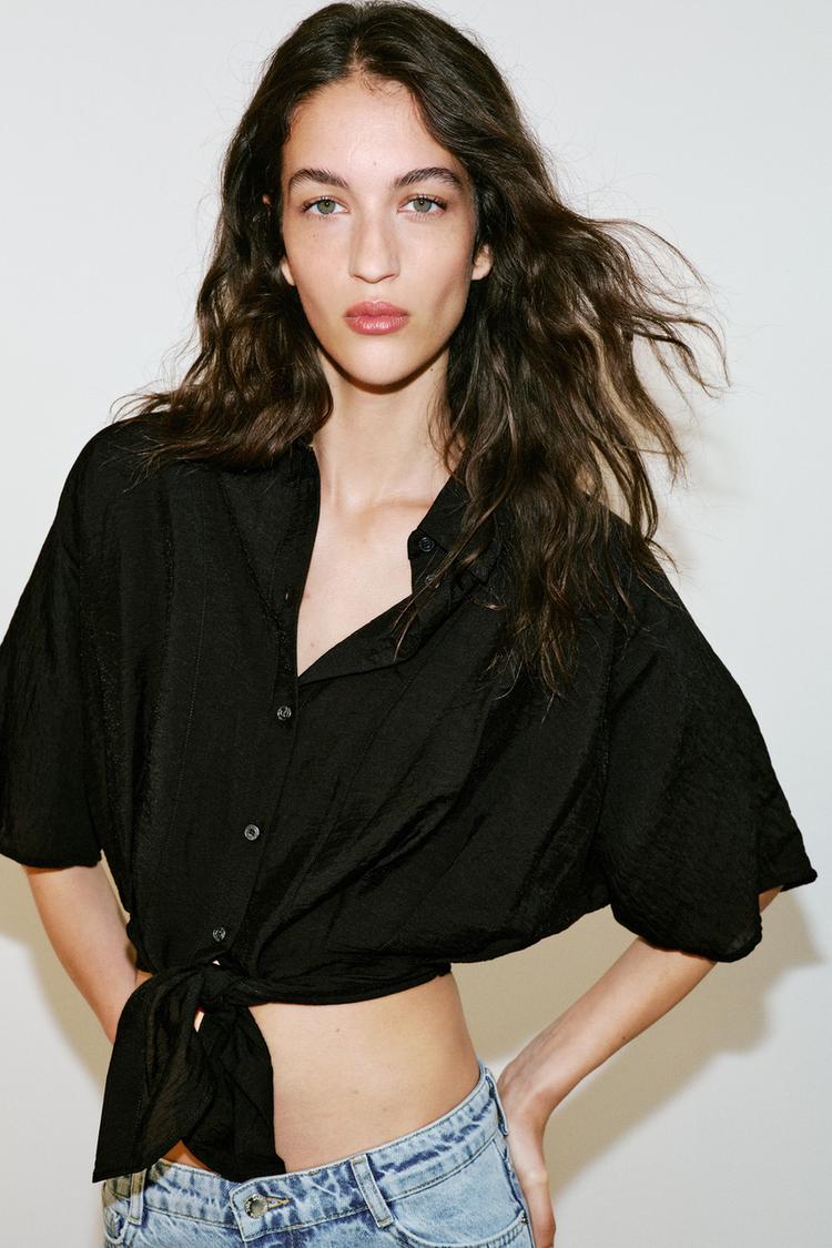 ZARA РУБАШКА С КОРОТКИМИ РУКАВАМИ И УЗЛОМ, ЧЕРНЫЙ