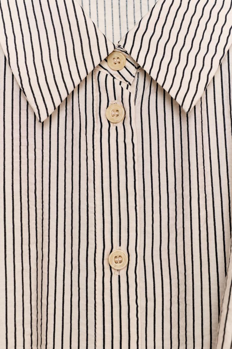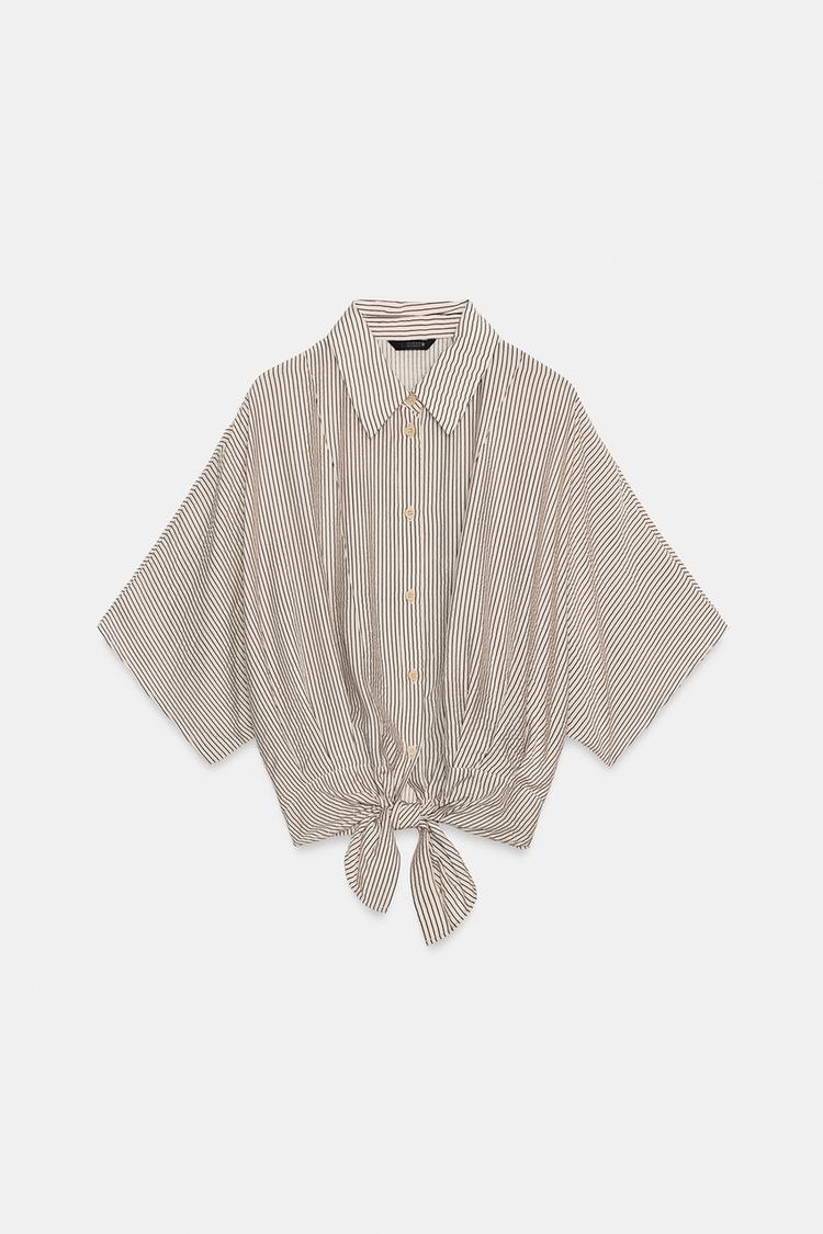 ZARA РУБАШКА С КОРОТКИМИ РУКАВАМИ И УЗЛОМ, ЭКРЮ/ЧЕРНЫЙ