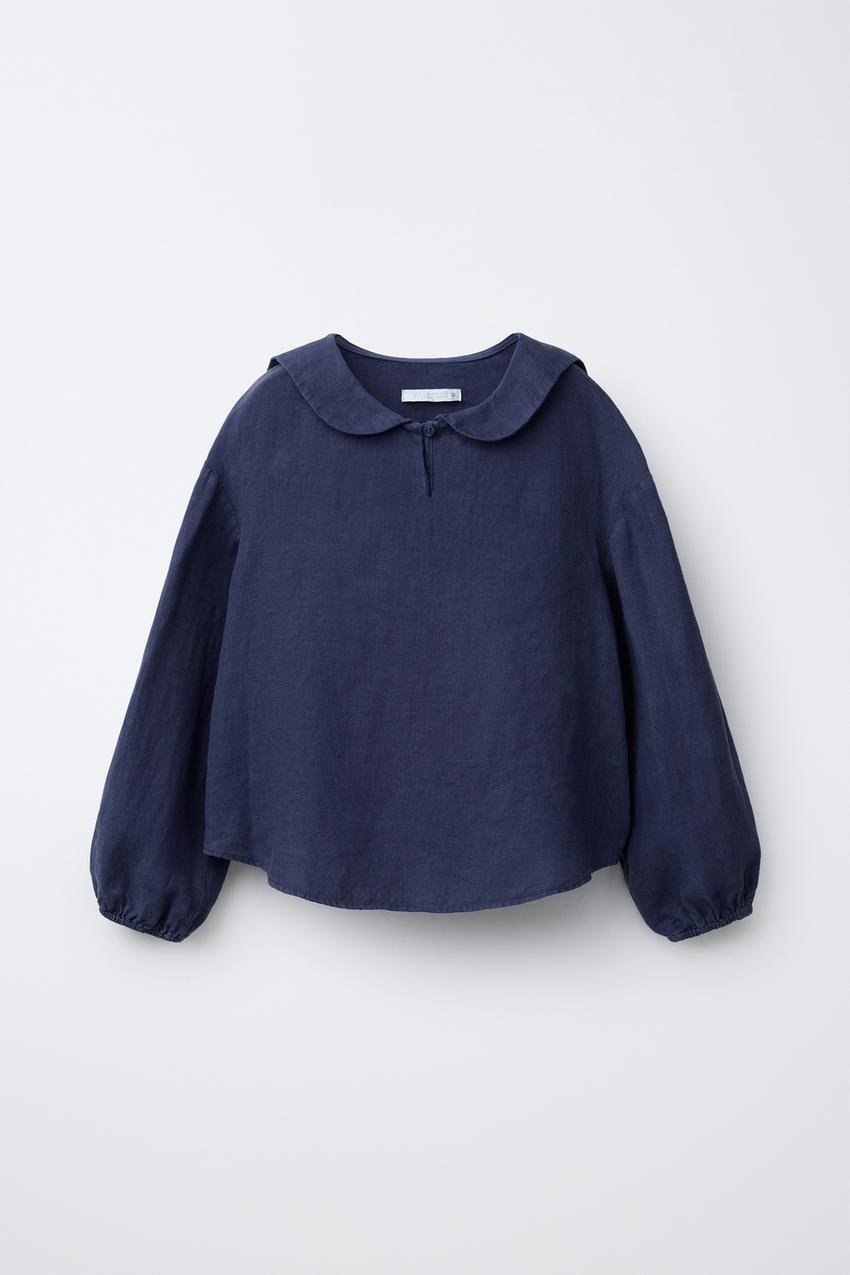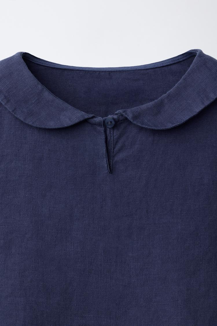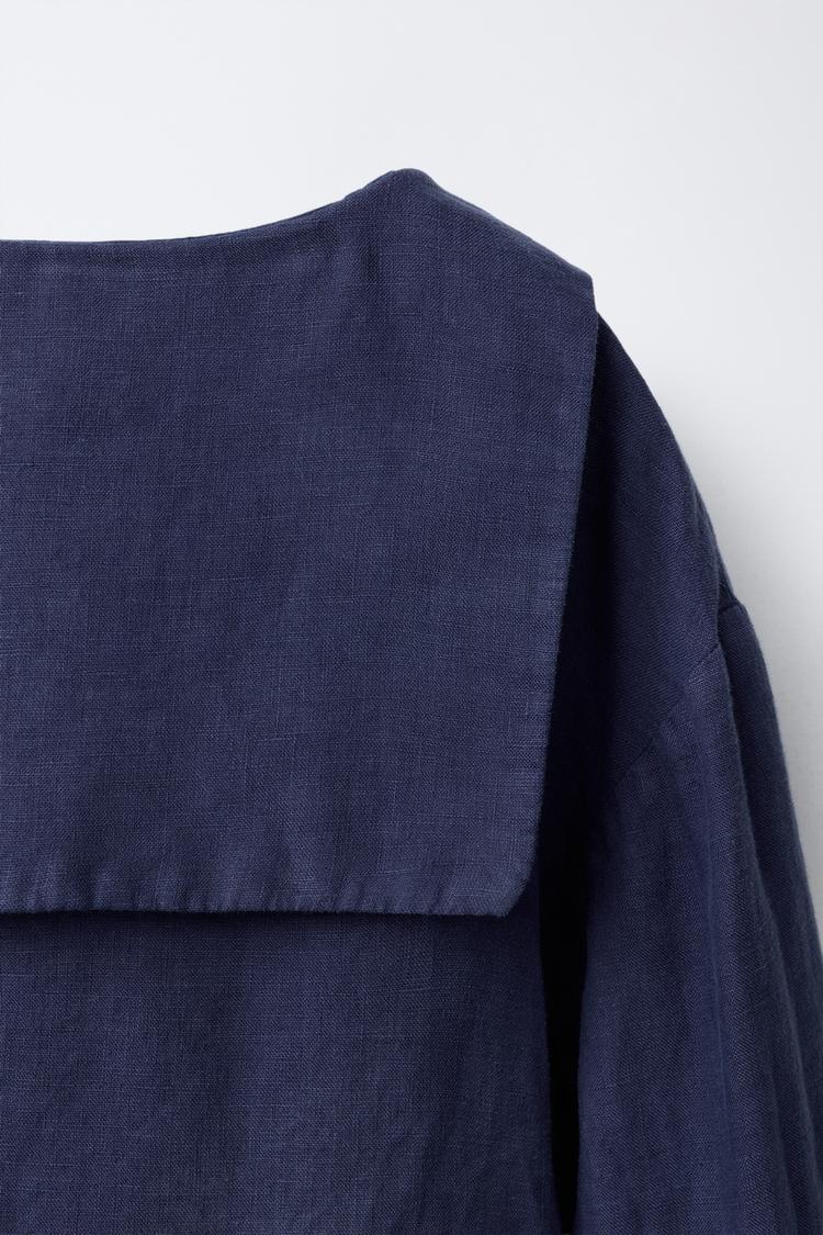 ZARA РУБАШКА С КРУГЛЫМ ВОРОТНИКОМ ИЗ 100% ЛЬНА, СИНИЙ