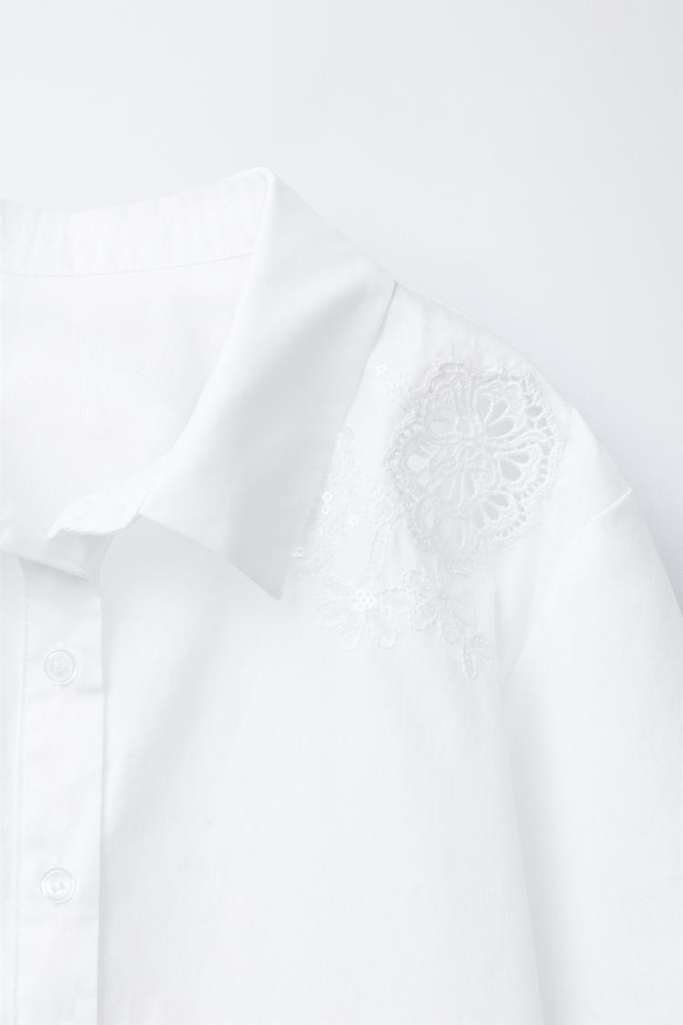 ZARA РУБАШКА С КРУЖЕВОМ, БЕЛЫЙ