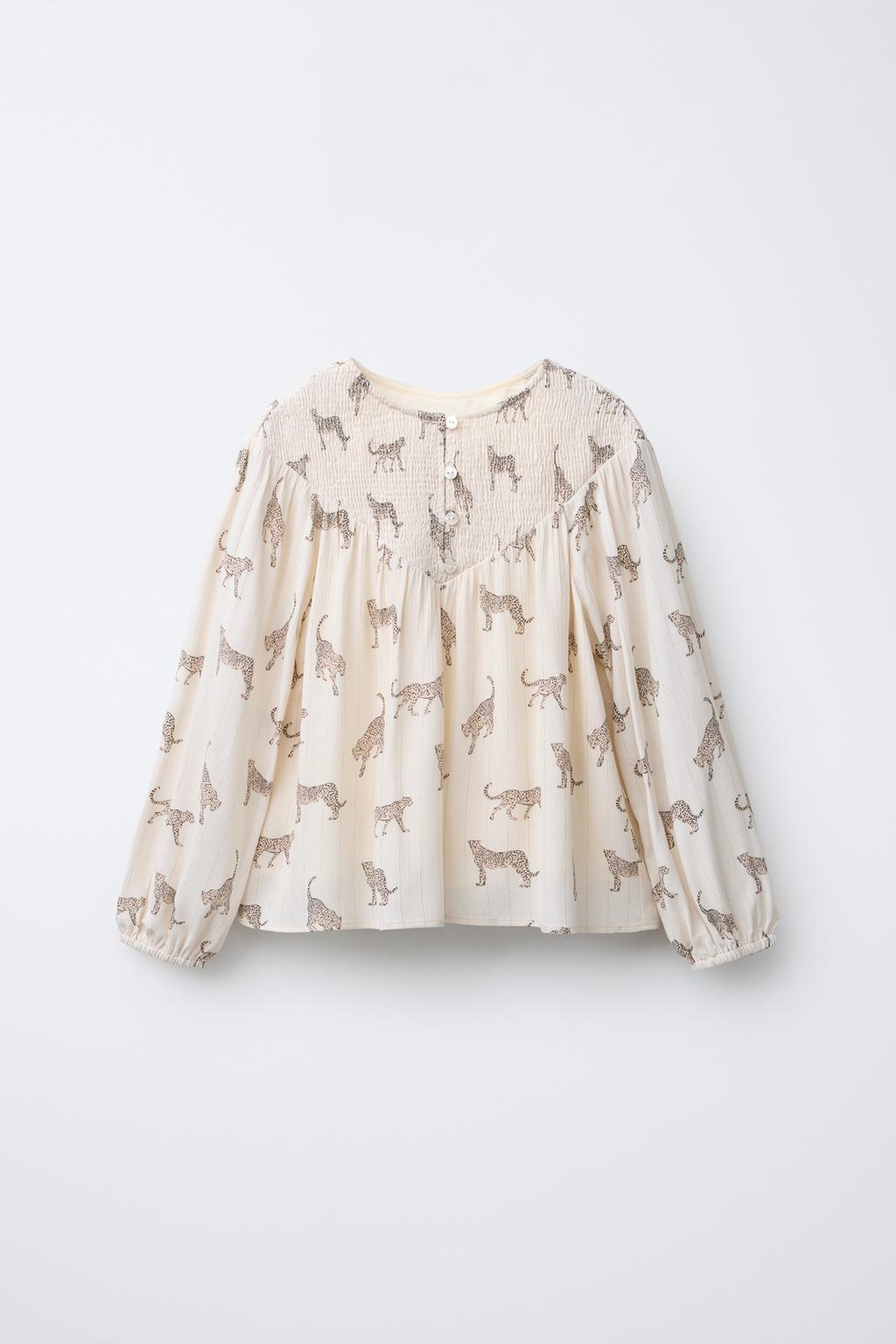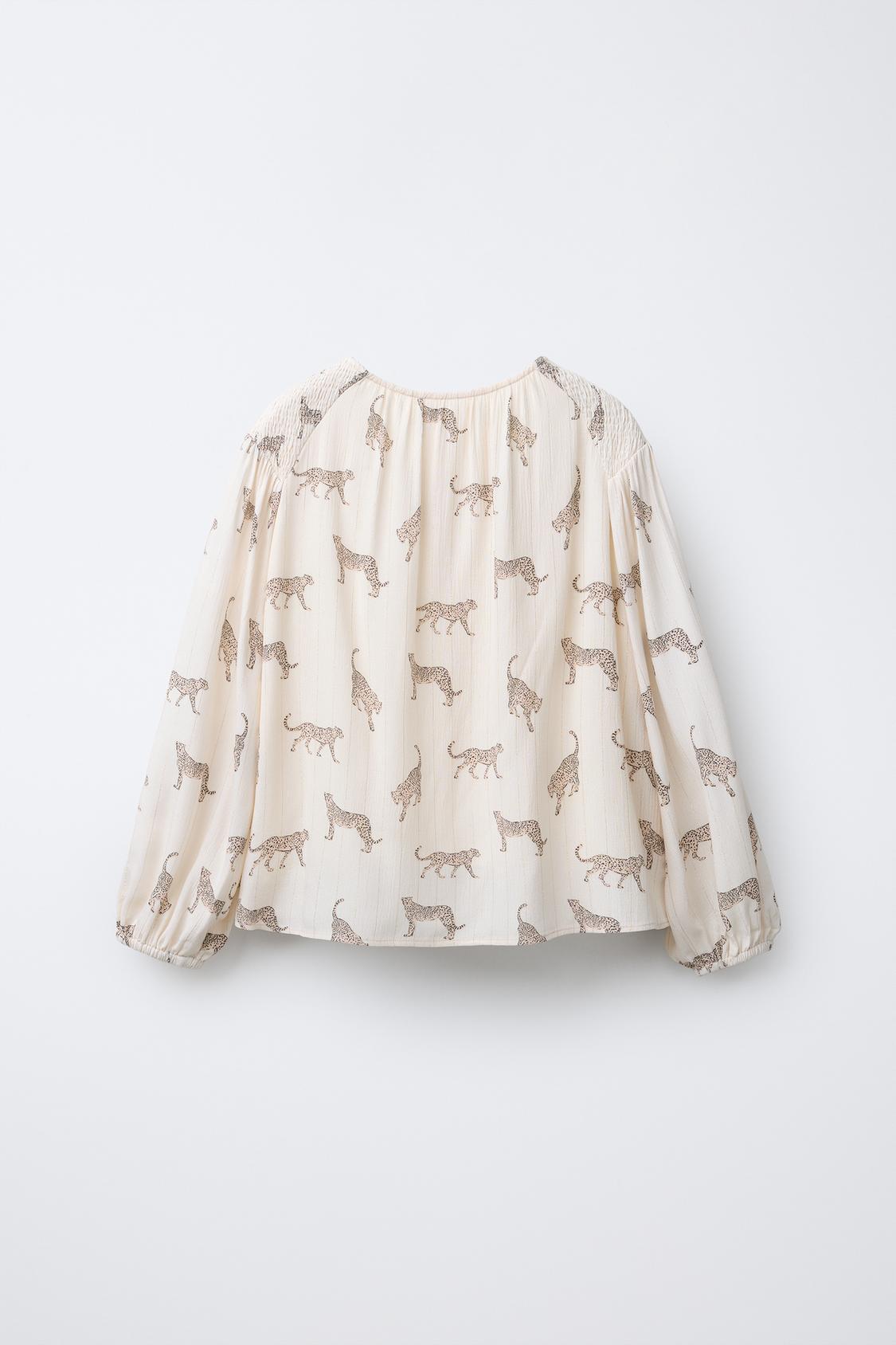 ZARA РУБАШКА С ЛЕОПАРДОВЫМ ПРИНТОМ, ЭКРЮ