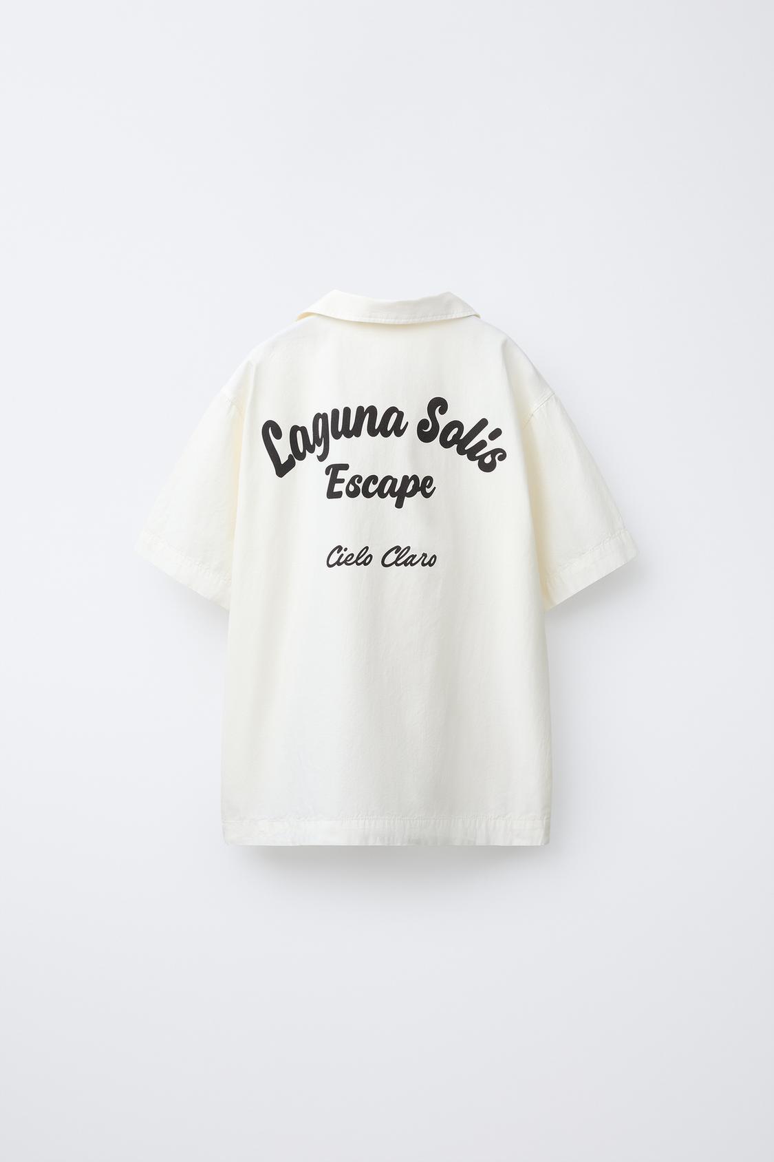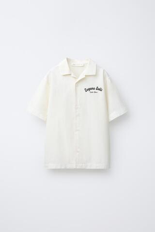 ZARA РУБАШКА С НАДПИСЬЮ, КРЕМОВЫЙ