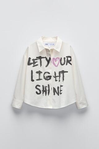 ZARA РУБАШКА С НАДПИСЬЮ В СТИЛЕ ГРАФФИТИ, ЖЕЛТОВАТО-БЕЛЫЙ