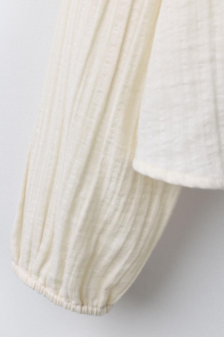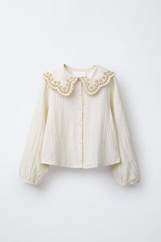 ZARA РУБАШКА С ОТЛОЖНЫМ ВОРОТНИКОМ И ВЫШИВКОЙ, ЭКРЮ