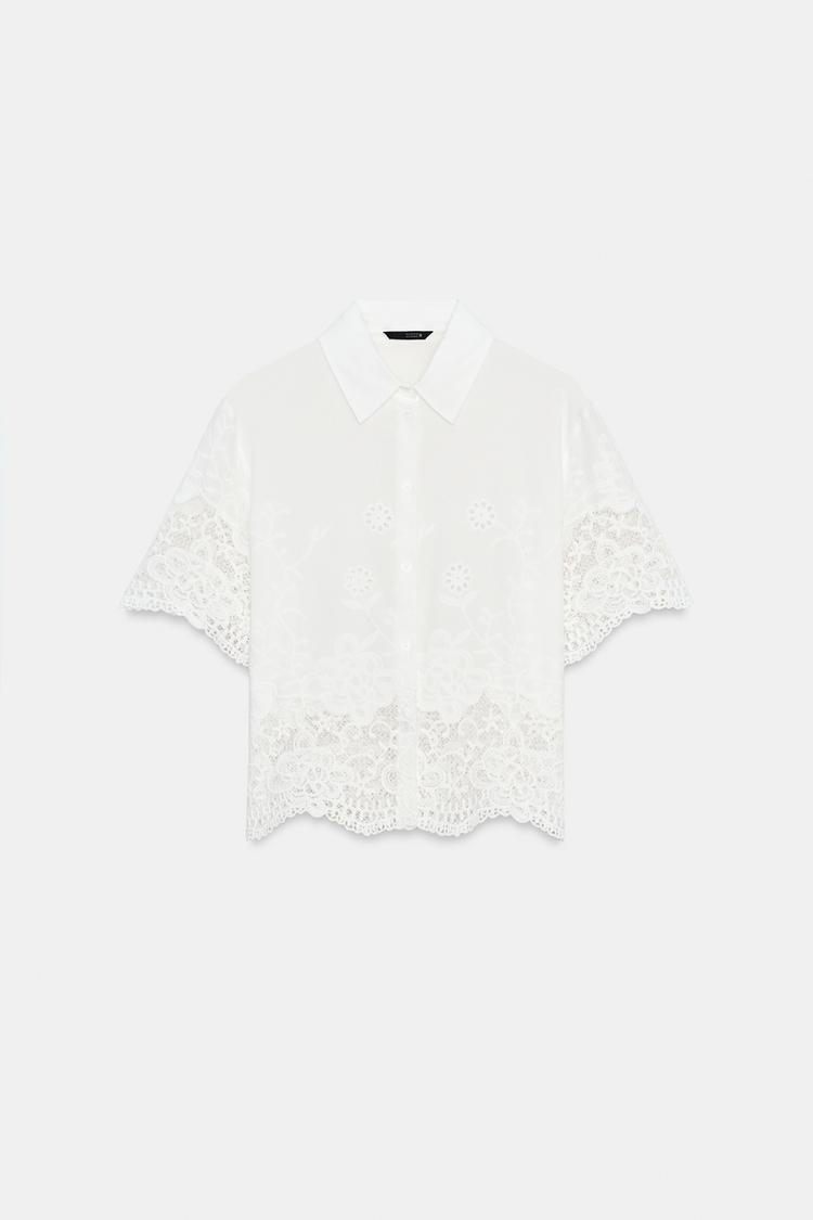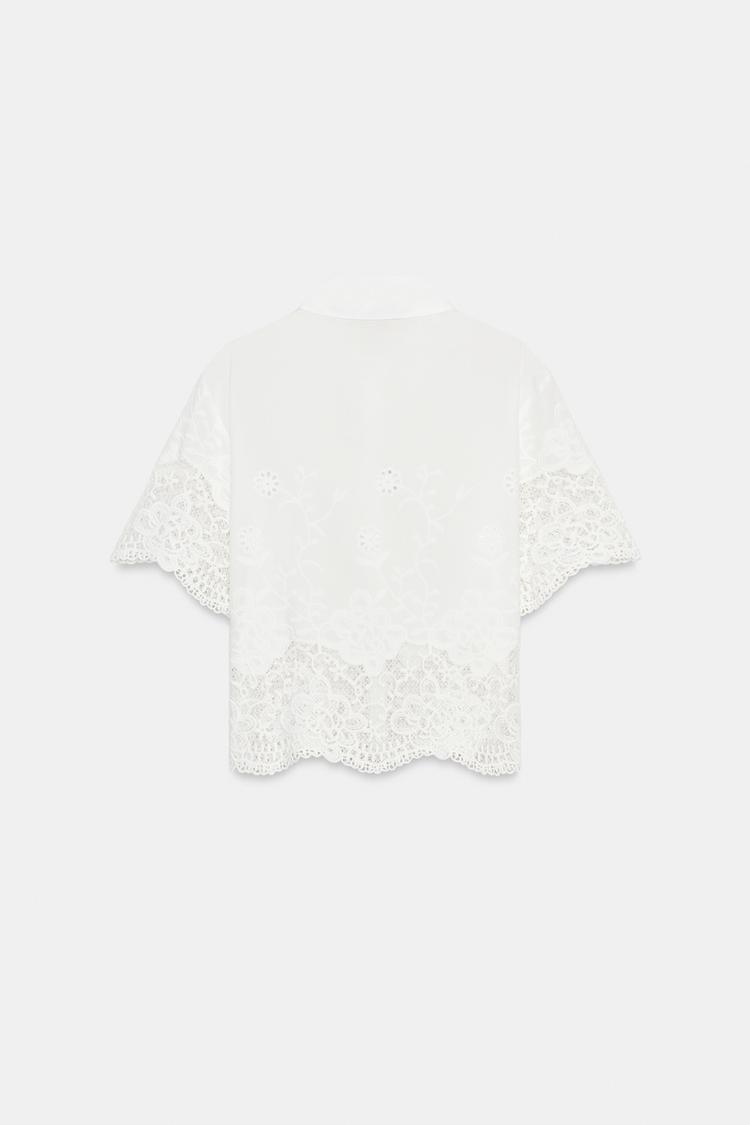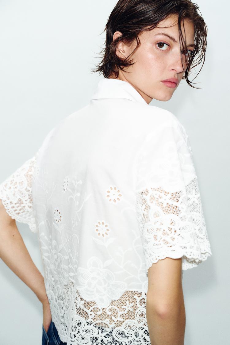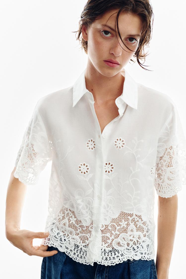 ZARA РУБАШКА С ПЕРФОРИРОВАННОЙ ВЫШИВКОЙ, БЕЛЫЙ