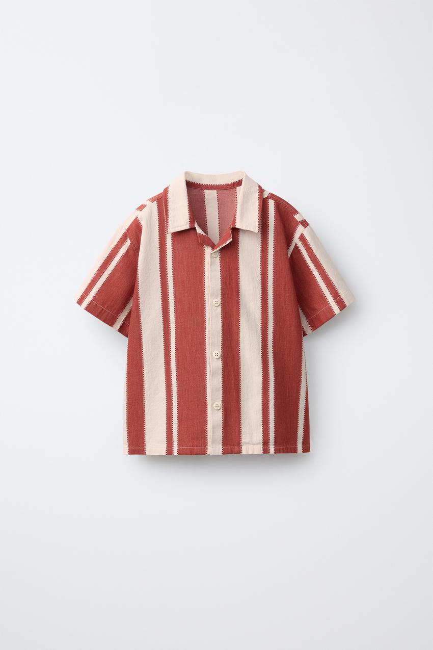 ZARA РУБАШКА С ПРИНТОМ В ПОЛОСКУ, КРАСНЫЙ