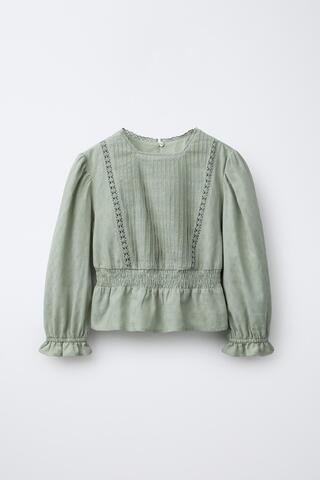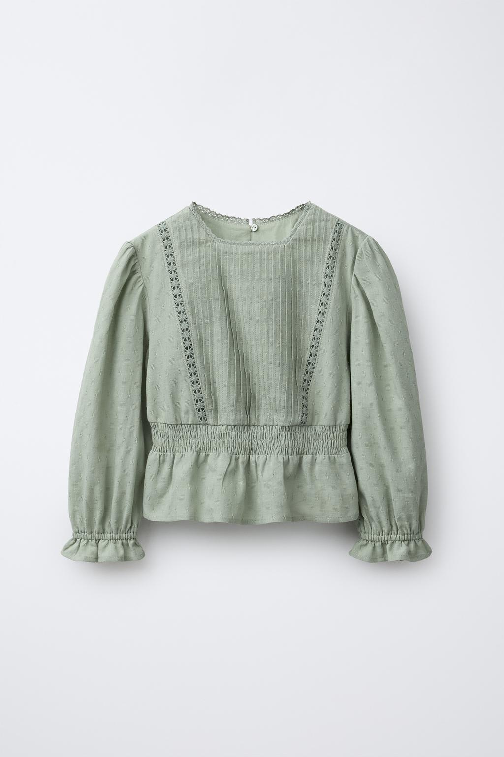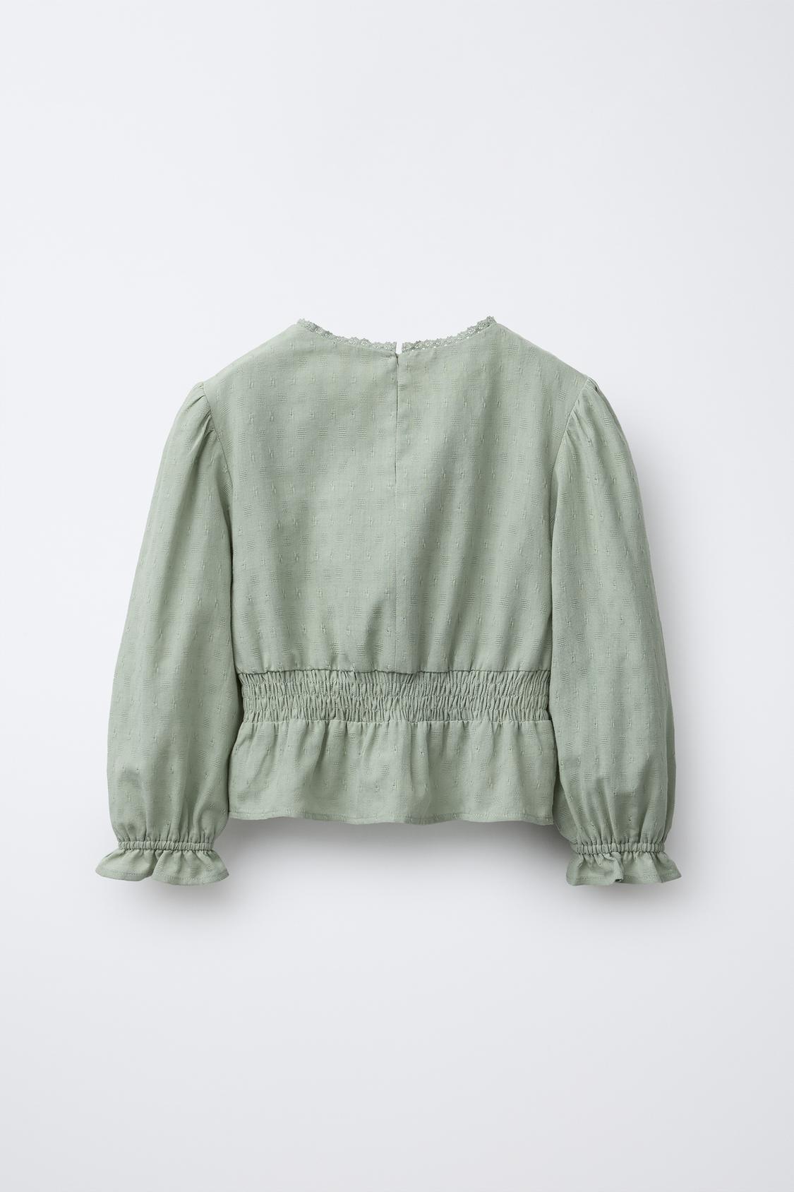 ZARA РУБАШКА С ПРОШВОЙ И ВОЛАНАМИ, МЯГКИЙ ЗЕЛЕНЫЙ