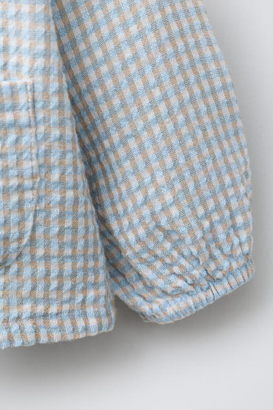 ZARA РУБАШКА С ТЕКСТУРОЙ В КЛЕТКУ, ПЕСОЧНЫЙ/СИНИЙ