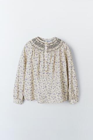 ZARA РУБАШКА С ЦВЕТОЧНОЙ ВЫШИВКОЙ, РАЗНОЦВЕТНЫЙ