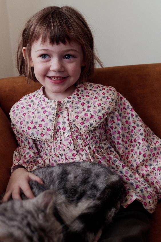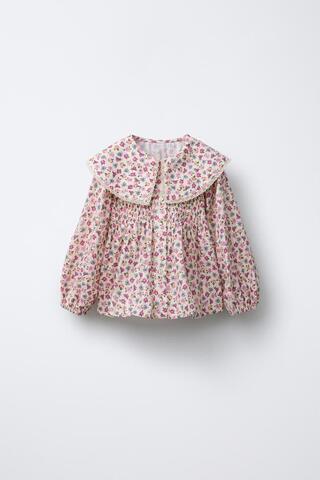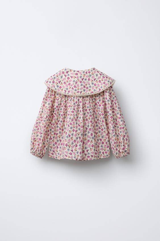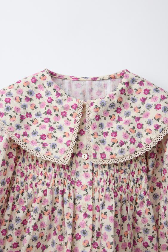 ZARA РУБАШКА С ЦВЕТОЧНЫМ ПРИНТОМ, ЭКРЮ