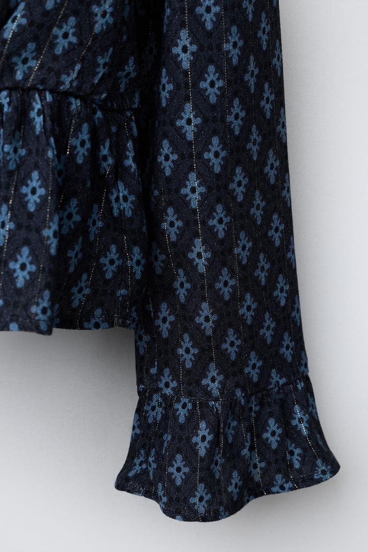 ZARA РУБАШКА С ЦВЕТОЧНЫМ ПРИНТОМ И БЛЁСТКАМИ, СИНИЙ