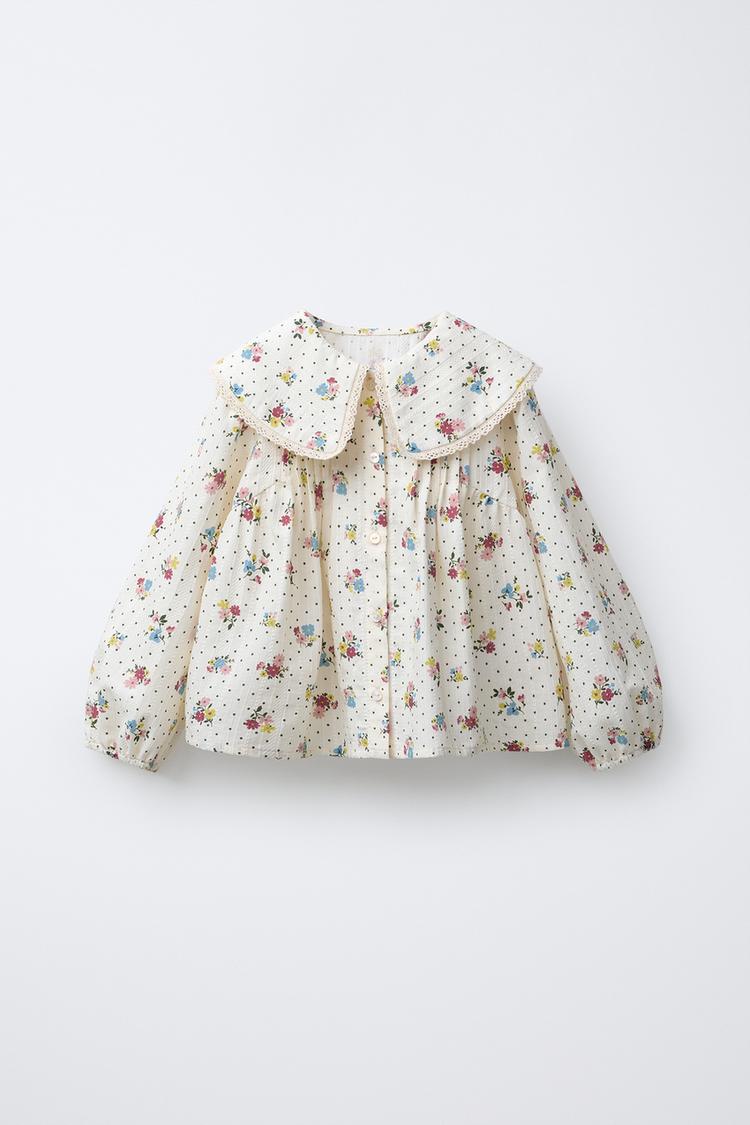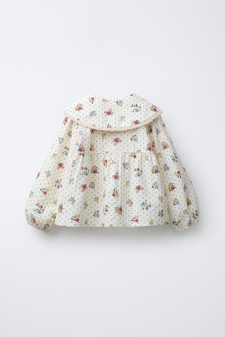 ZARA РУБАШКА С ЦВЕТОЧНЫМ ПРИНТОМ И КРУЖЕВОМ, РАЗНОЦВЕТНЫЙ