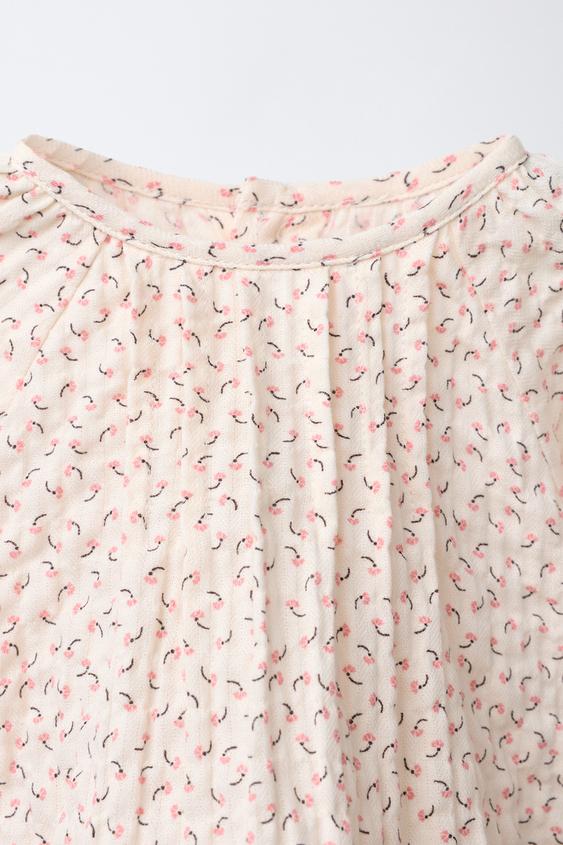 ZARA РУБАШКА С ЦВЕТОЧНЫМ УЗОРОМ, ЭКРЮ