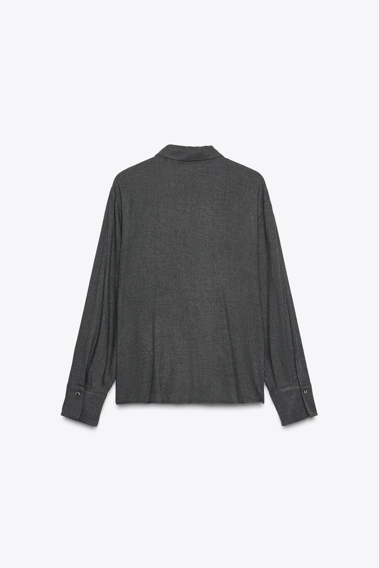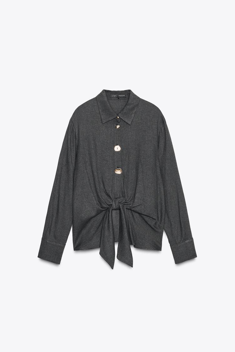 ZARA РУБАШКА С УЗЛОМ И МЕТАЛЛИЧЕСКИМИ ПУГОВИЦАМИ, ТЕМНО-СЕРЫЙ