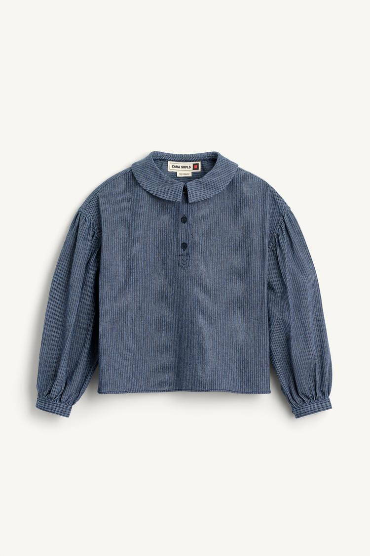 ZARA РУБАШКА С ВОРОТНИКОМ-ЛОДОЧКА, ТЕМНО-СИНИЙ