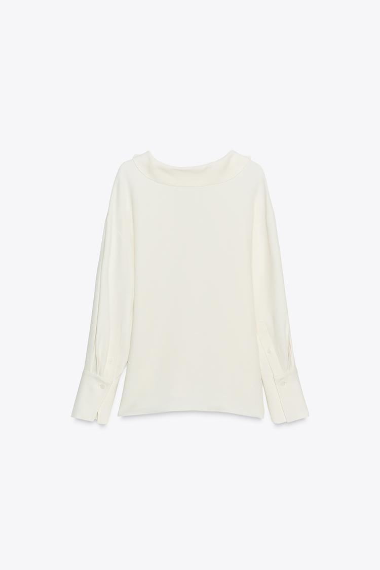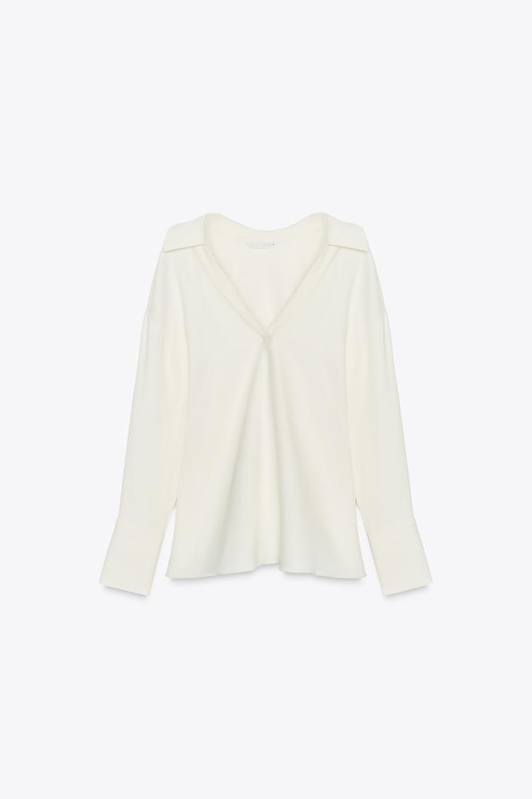 ZARA РУБАШКА С ВОРОТНИКОМ ПОЛО — ZW COLLECTION, ЖЕЛТОВАТО-БЕЛЫЙ