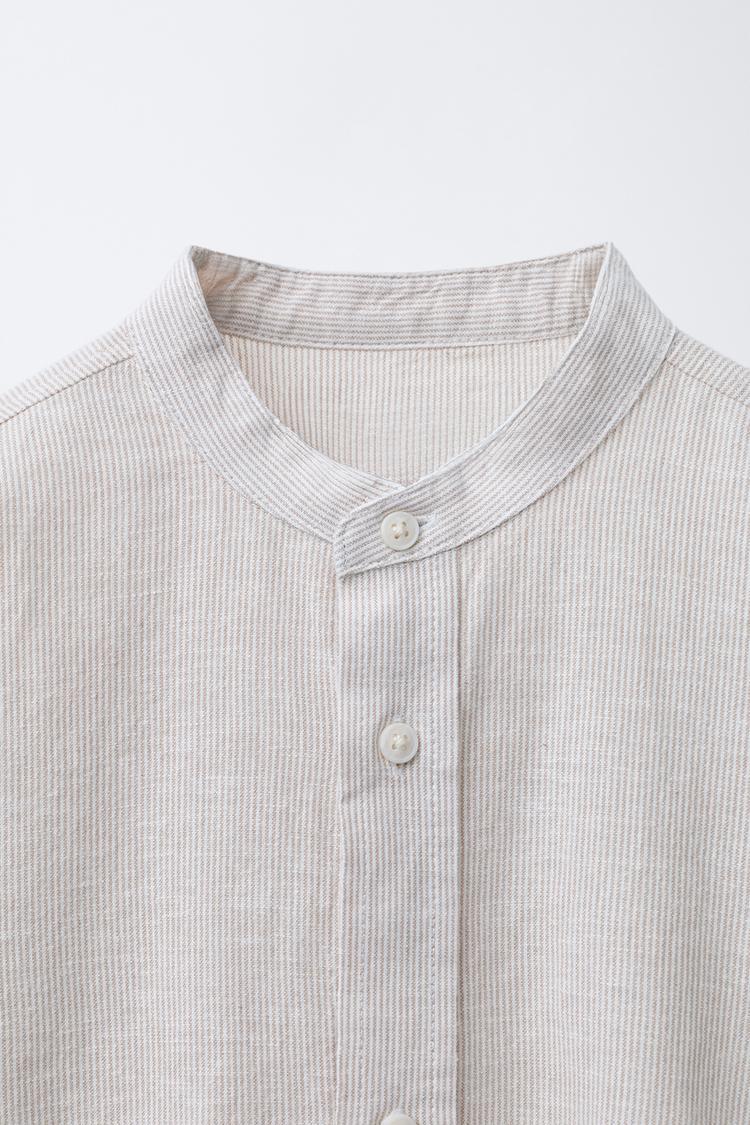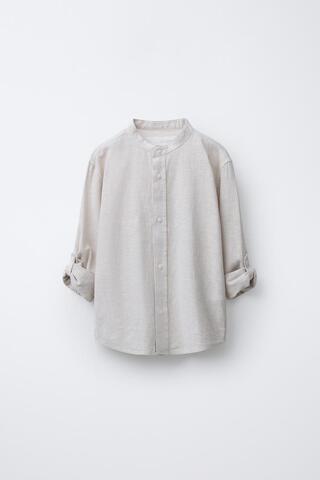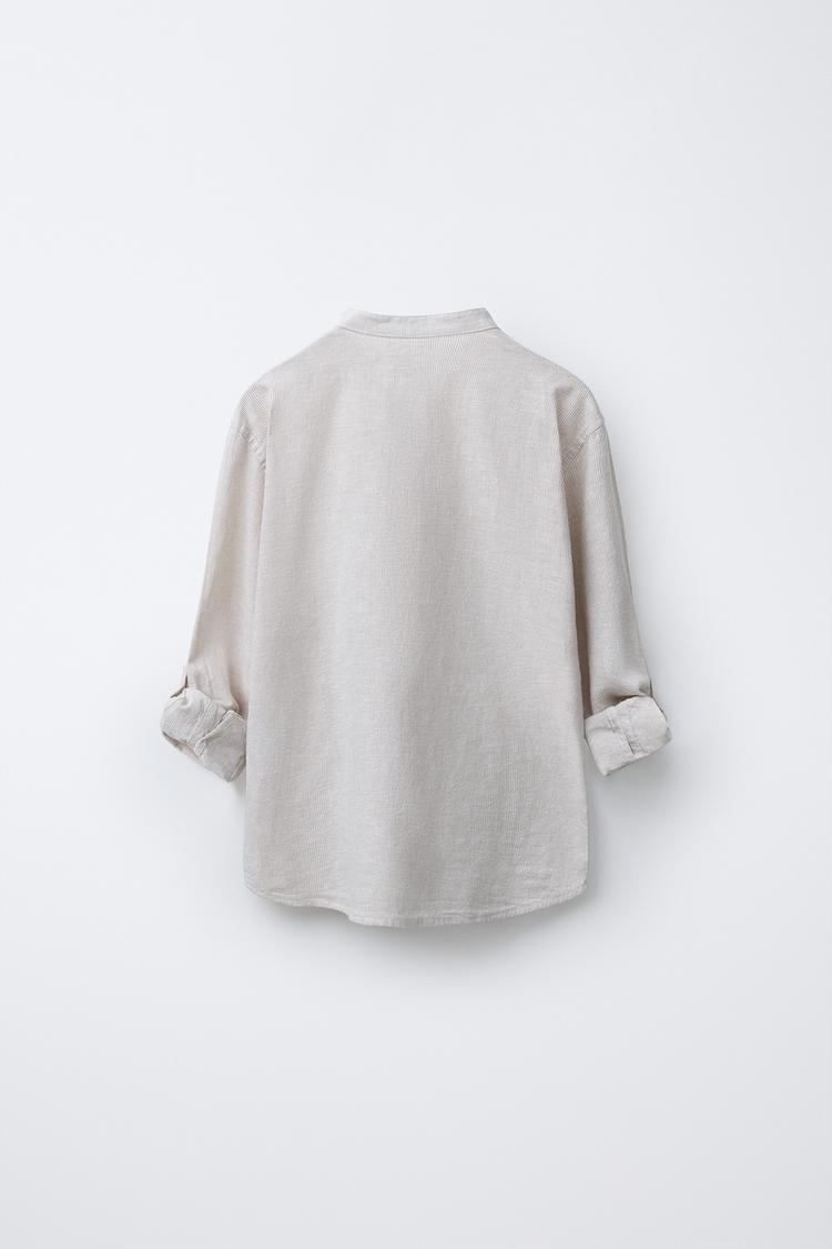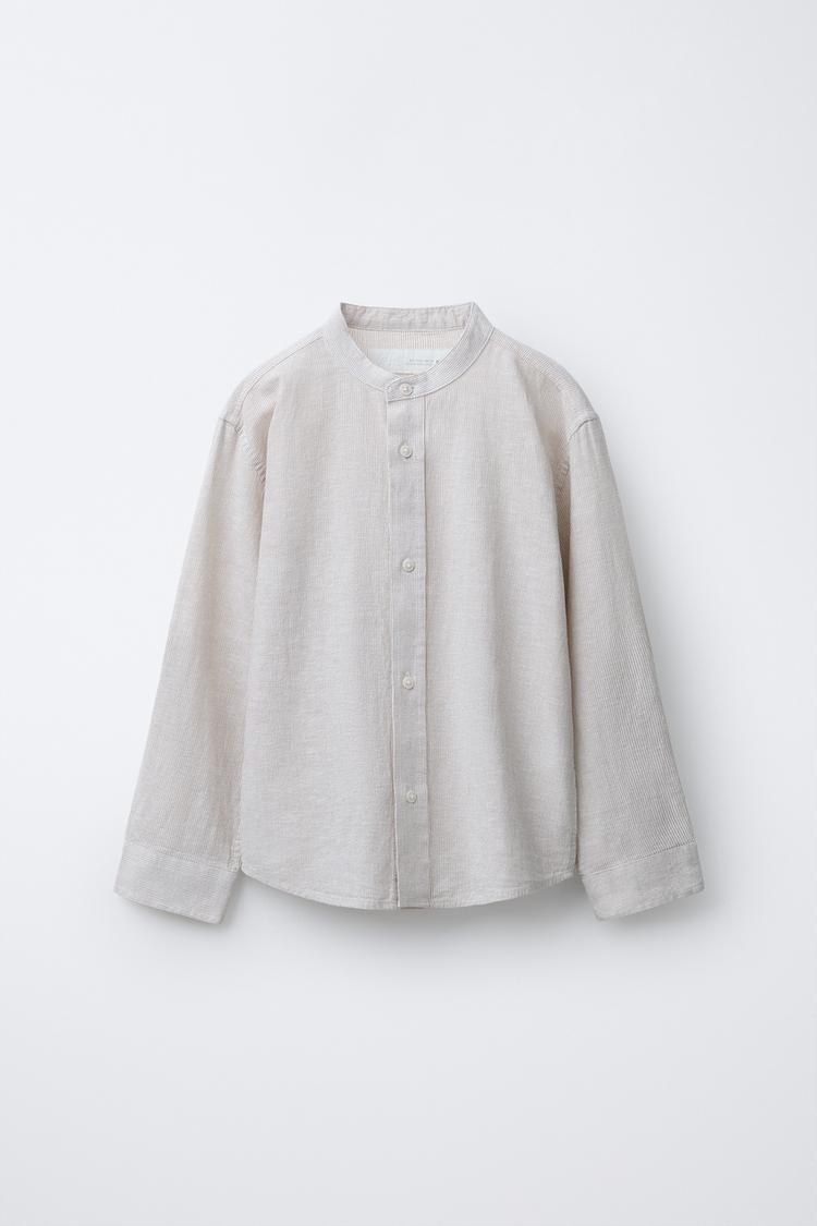 ZARA РУБАШКА С ВОРОТНИКОМ-СТОЙКОЙ, СВЕТЛО-БЕЖЕВЫЙ